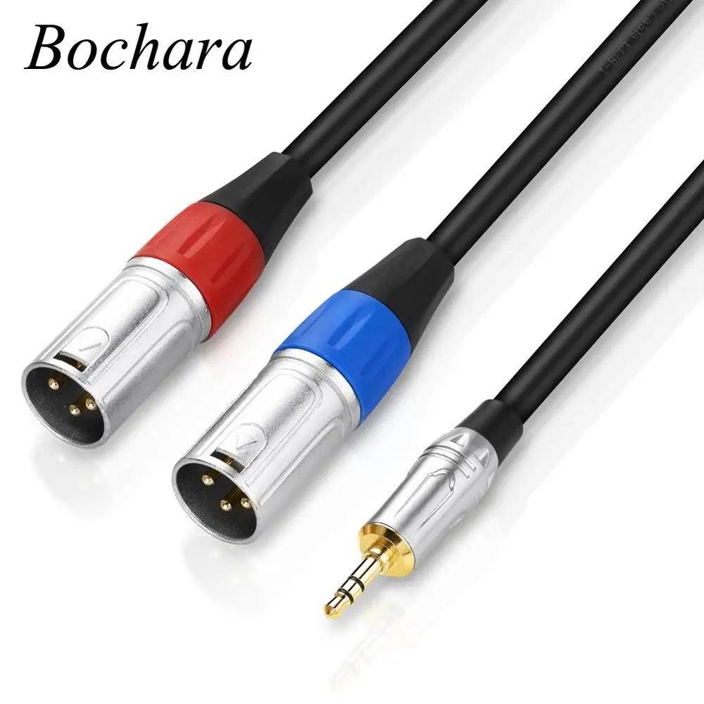 Bochara позолоченный 3,5 мм стерео разъем папа-двойной XLR папа OFC Aux аудио кабель фольга + Плетеный экранированный 1 м 2 м 3 м