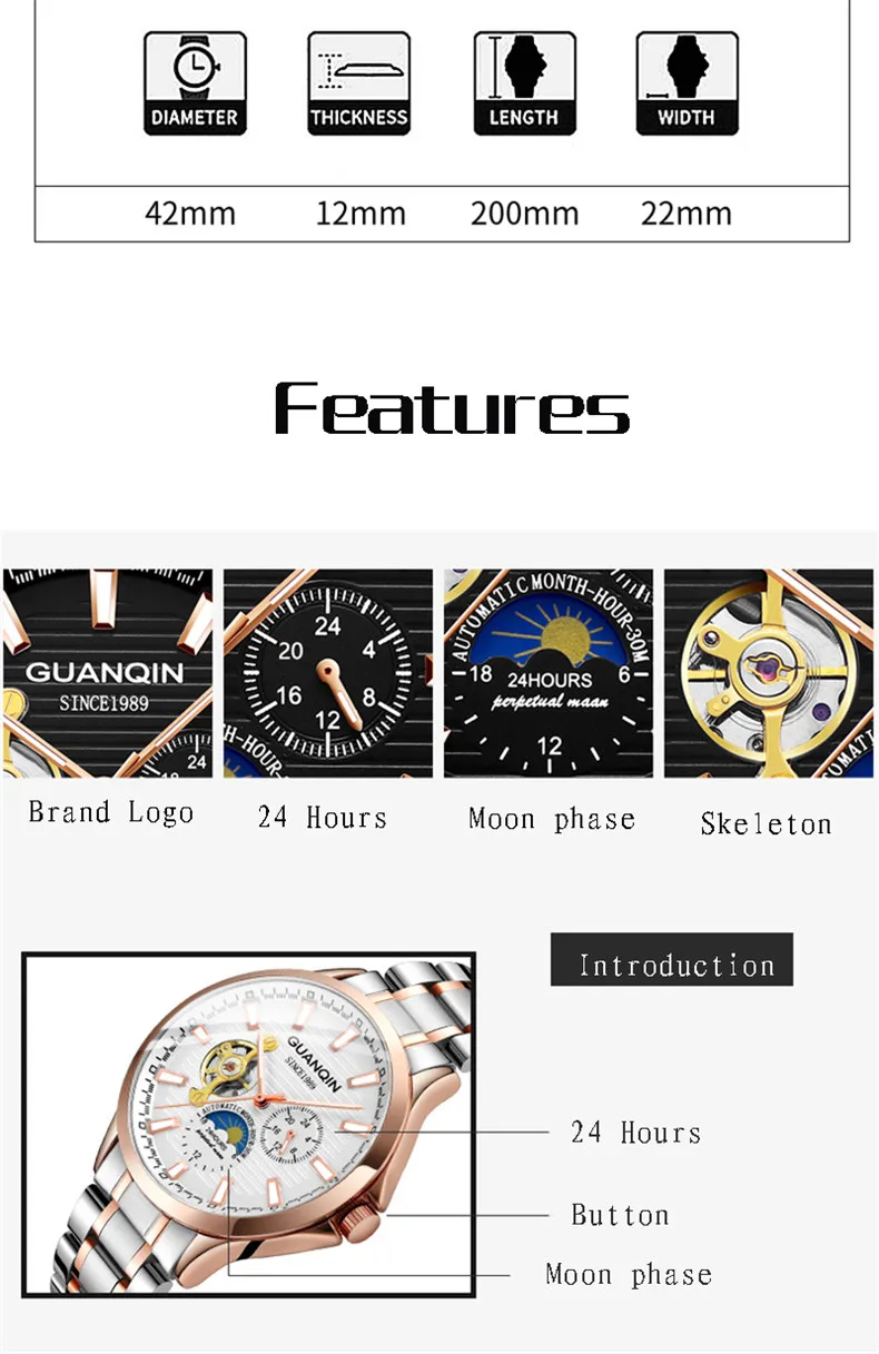Часы наручные GUANQIN Мужские автоматические, водонепроницаемые мех...