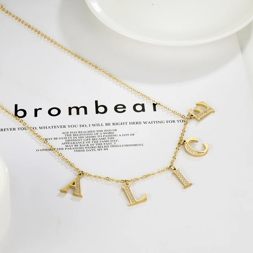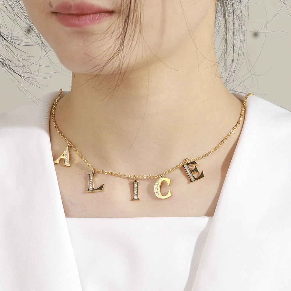 Ожерелье моя форма с именем на заказ для женщин и девушек с буквами инициала персонализированное ожерелье из нержавеющей стали с прозрачным цирконием ювелирные изделия в подарок Алиса