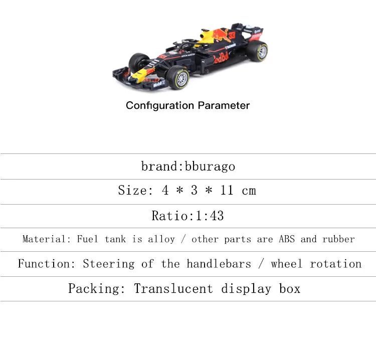 Модель автомобиля Bburago 1:43 2019 RB15 RB14 RB13 RB12 RB9 #33 #3 ...