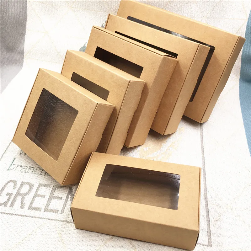 Новые 10 шт.лот 22 размера квадратные подарочные коробки из крафтовой бумаги натуральное коричневое окно подарочная упаковочная коробка