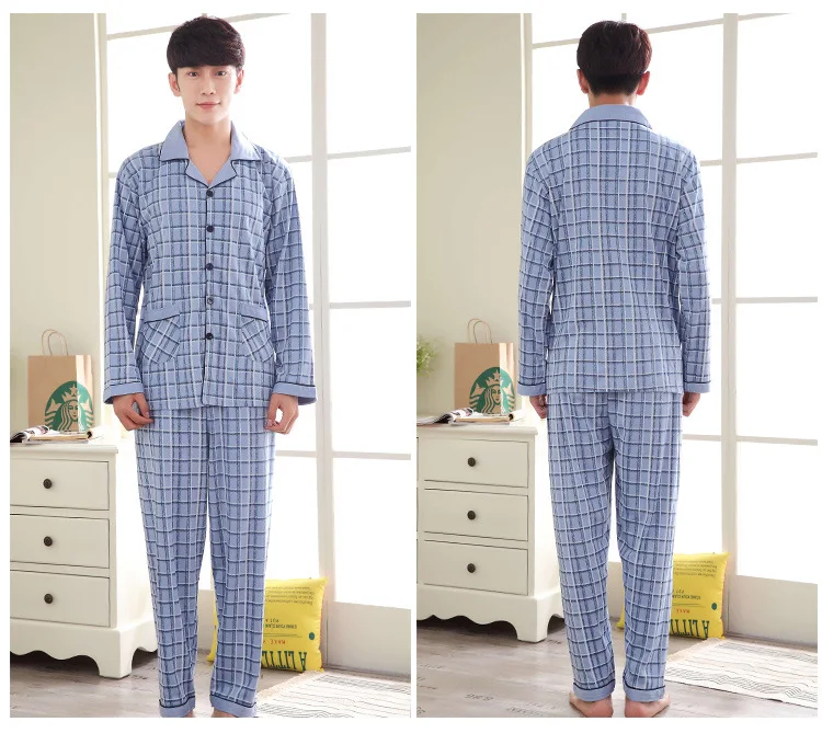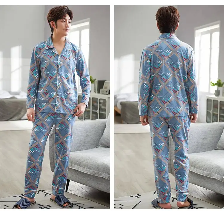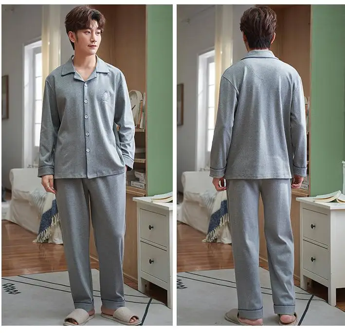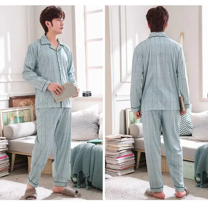 Мужская Хлопковая пижама, комплект из 2 предметов, рубашка и штаны, Повседневная Свободная одежда для сна, ночная рубашка с длинным рукавом размера плюс, домашняя одежда 2XL 3XL