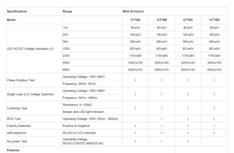 Области применения для UT18 включают плавки, электронику, производство и электрику. Эти тестеры напряжения-идеальный инструмент для электриков для быстрого измерения уровней напряжения в суровых условиях Энди.