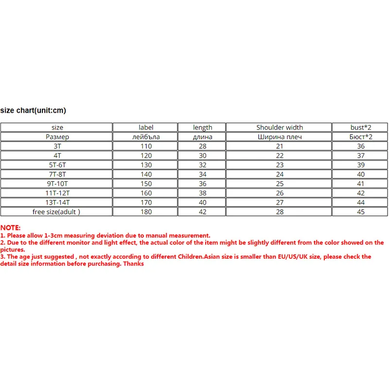 3. Возраст только что рекомендованный, не совсем соответствует разному размеру детей. Азиатский размер меньше, чем размер ЕС/США/Великобритании, пожалуйста, проверьте подробную информацию о размере перед покупкой. Спасибо