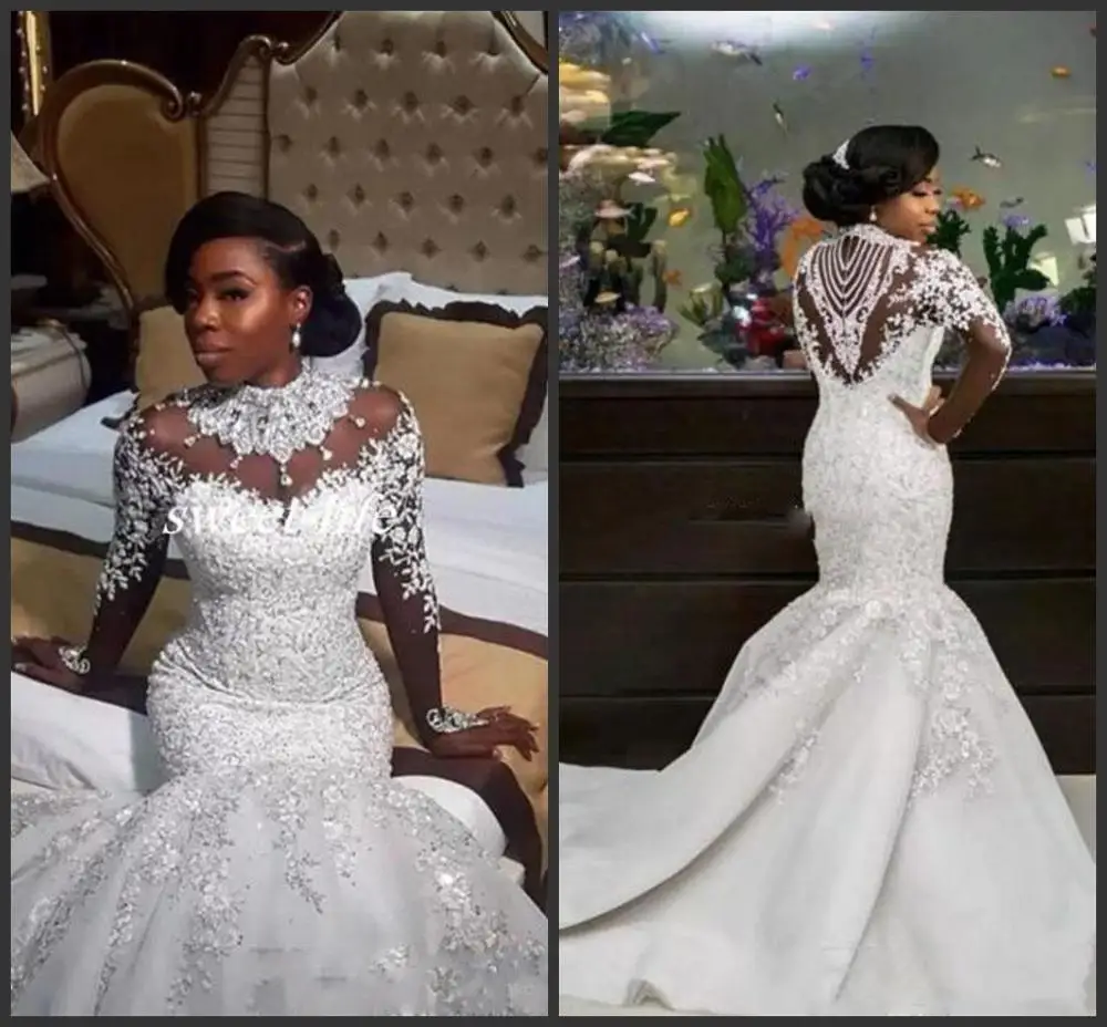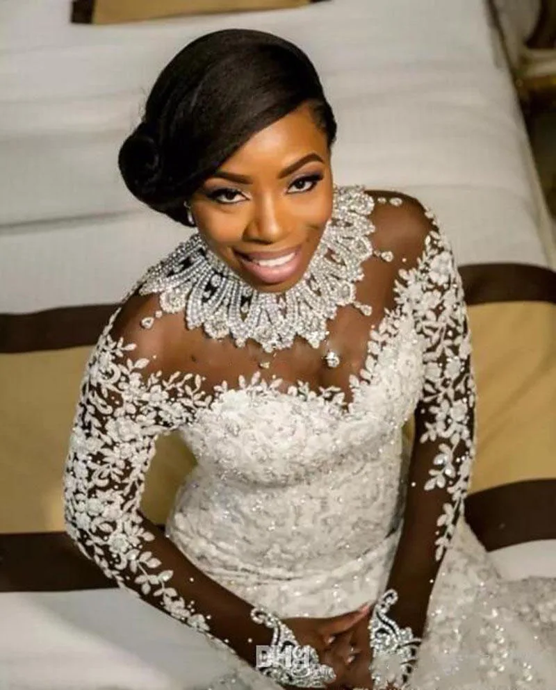 Женское свадебное платье It's yiiya, Белое Прозрачное платье с длинным рукавом и высоким воротником из страз на лето 2019
