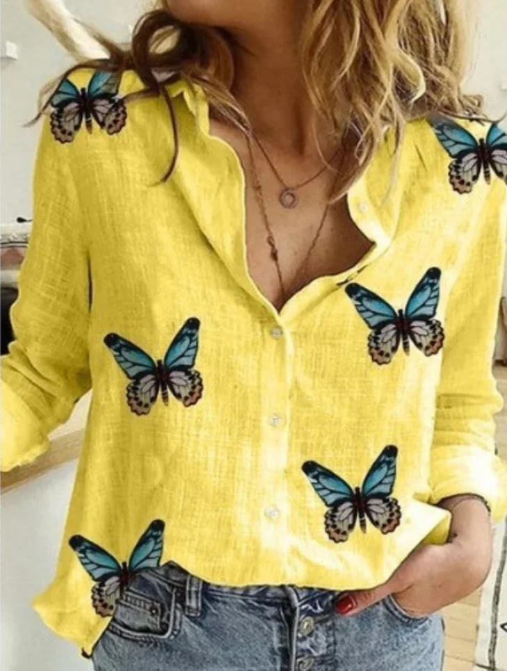 Женская рубашка с длинным рукавом, с принтом в виде бабочек