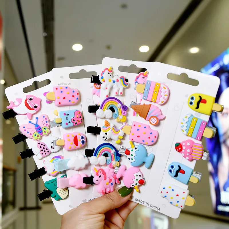 Заколки для волос для девочек, с изображением мороженого, единорога...