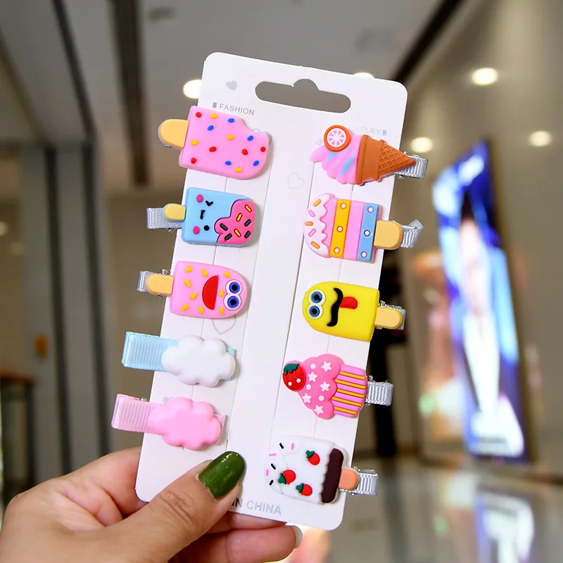 10 шт.компл. новые милые Мультяшные заколки для волос для девочек заколки для волос с мороженым фруктами детские милые модные аксессуары для волос