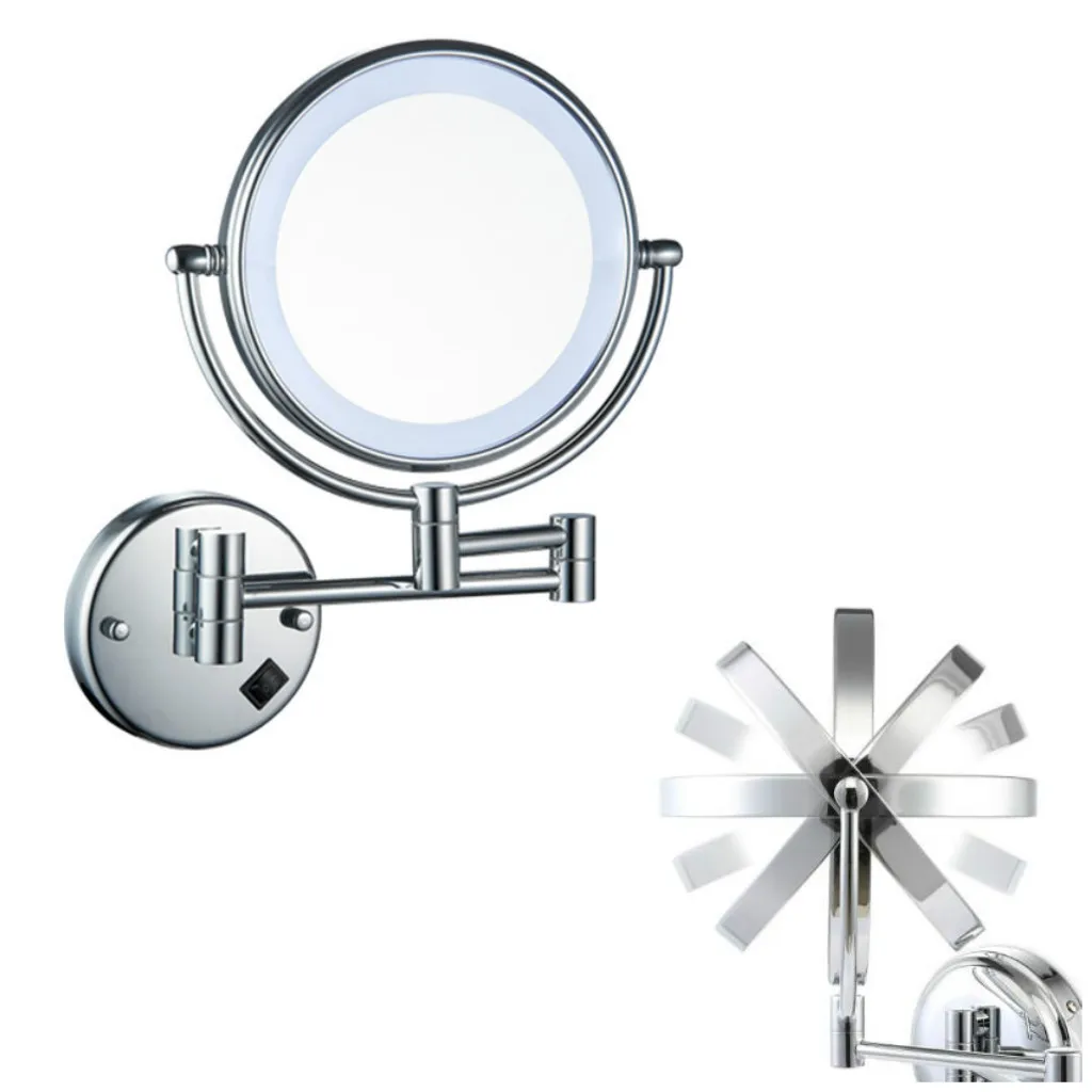 Настенное складное зеркало для макияжа, двухстороннее светодиодное Зеркало 8 дюймов с увеличением 3x5x7
