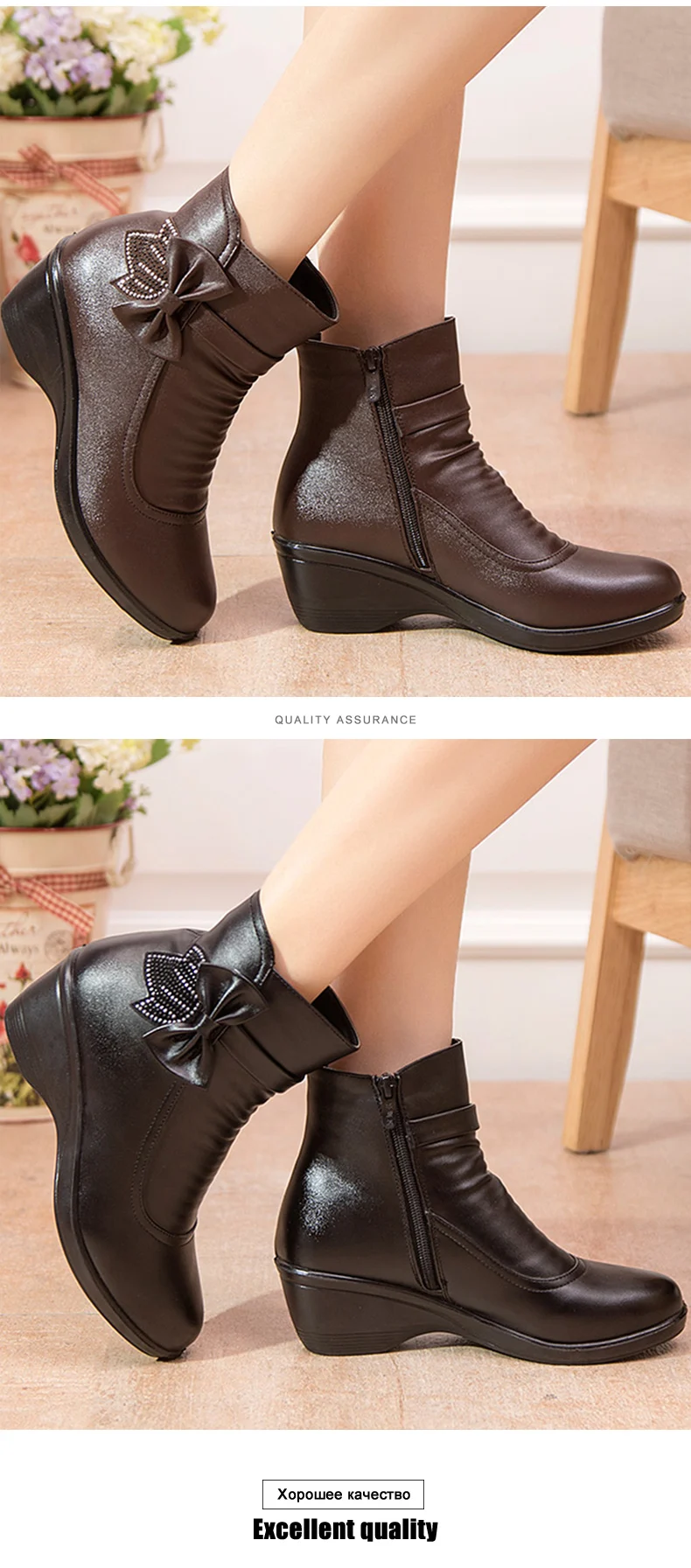 Женские ботинки на платформе, водонепроницаемые, черные, коричневые, на молнии