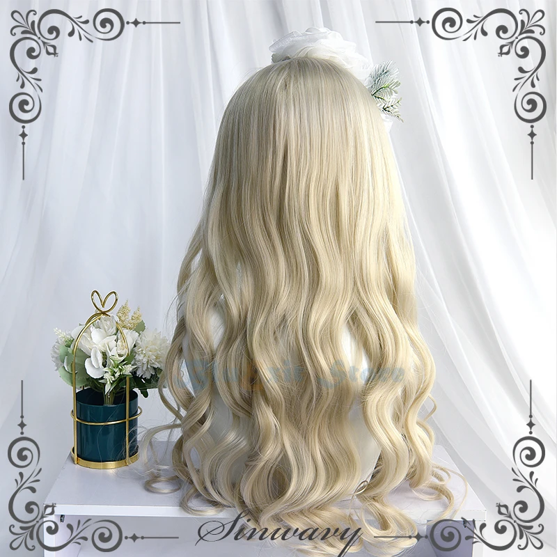 Золотой Блонд Лолита парик Харадзюку Феи косплей челка кудрявые дли...
