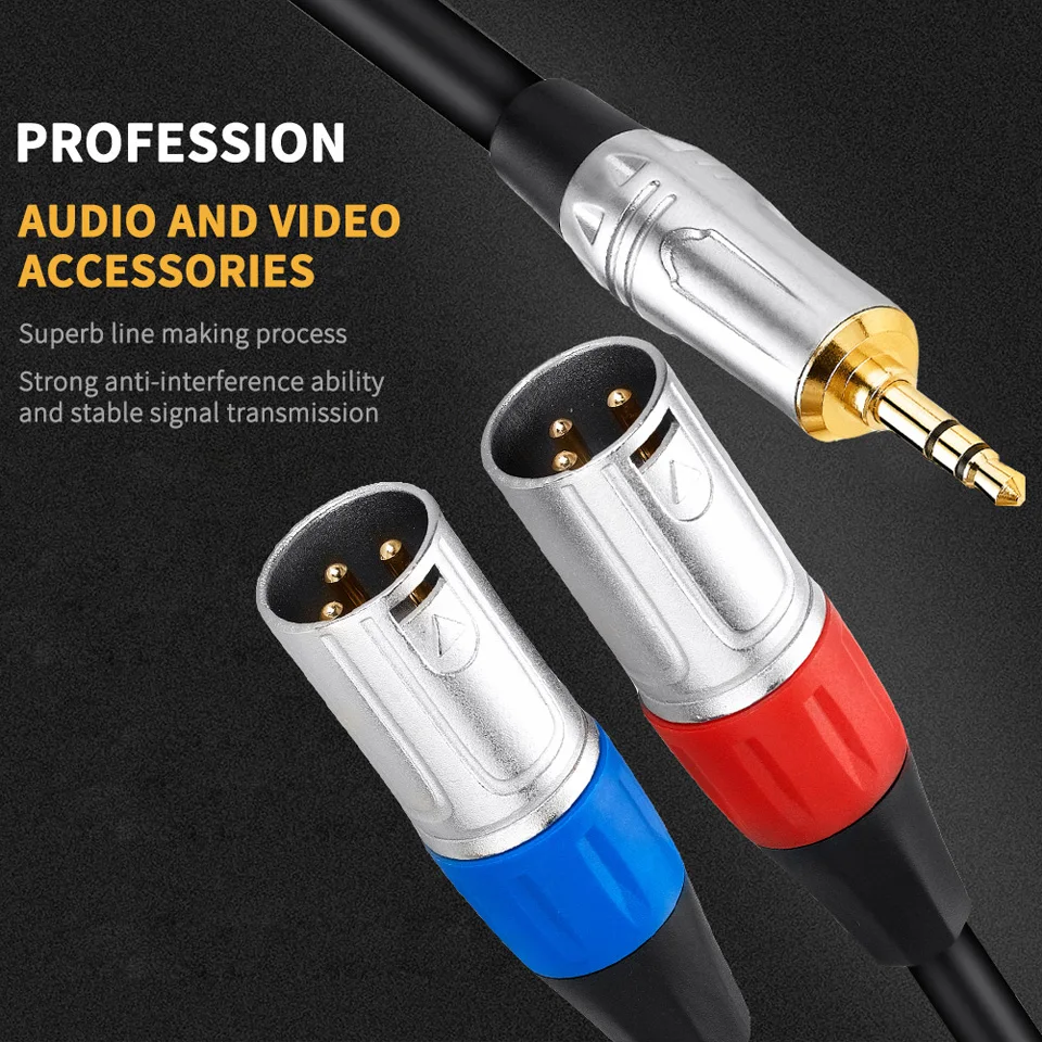 Описание продукта: 1, длина доступна: 1 м 2 м 3 м; Длина кабеля ветки: около 50 см каждая сторона 2. Цвет: черный 3, Тип: 3,5 мм стерео Aux Jack с двойным XLR Мужской кабель 4. Этот кабель идеально подходит для подключения цифрового медиаплеера или аналогичного аудиооборудования dedice к pro, он отлично подходит для мобильных телефонов, планшетов, ноутбуков, или аналогичные устройства, когда вам нужно подключить их к микшерной консоли 5, фольга + внутренний Плетеный экранированный + OFC медный сердечник с гибкой резиной для лучшей производительности и более длительного срока службы 6. Название бренда: lballist 7, диаметр кабеля: около 6 мм (OD 6,0) Внимание: этот кабель не используется для подключения двух микрофонов