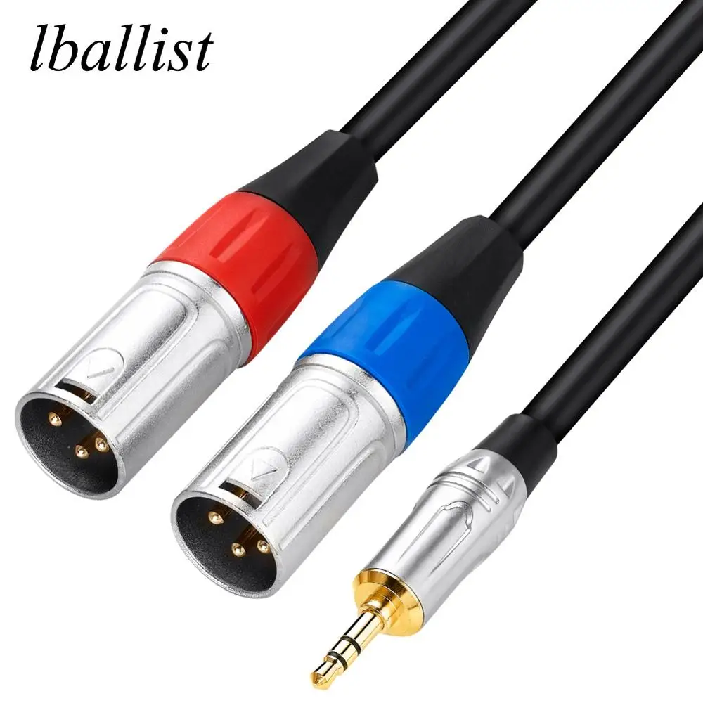 Lballist позолоченный 3,5 мм стерео разъем штекер к двойному XLR штекер OFC Aux аудио кабель фольга + Плетеный экранированный 1 м 2 м 3 м