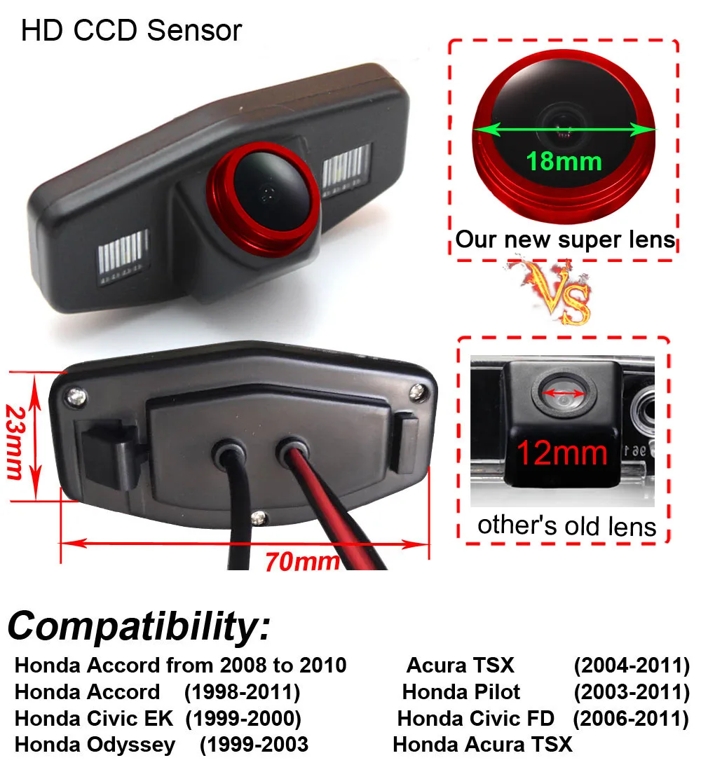 Красный HD 1280*720 пикселей 1000TV line для honda accord civic Ek odyssey Acura TSX Pilot Автомобильная камера заднего вида