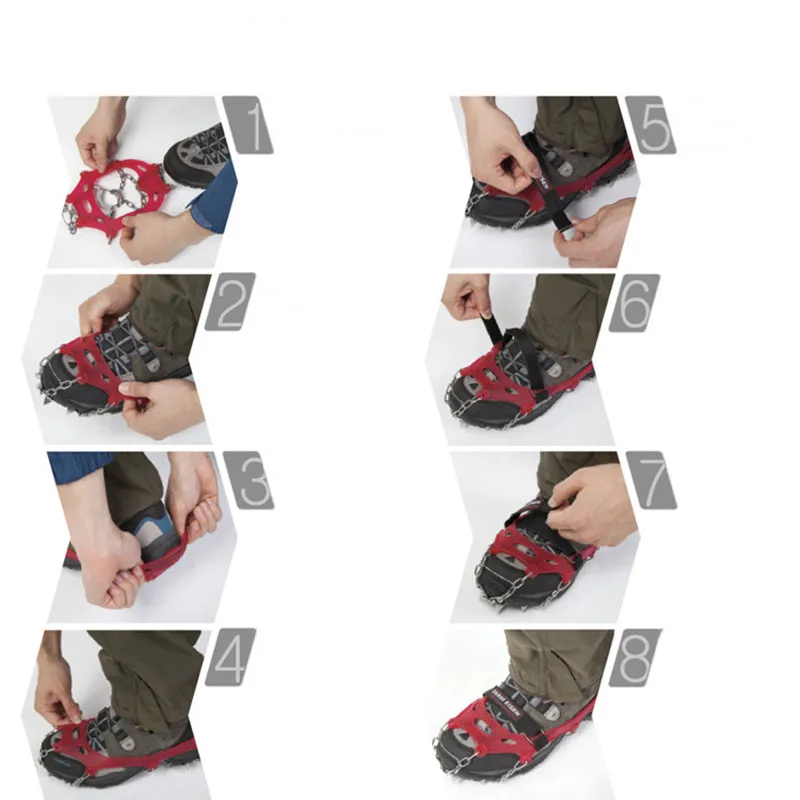 Качественные Нескользящие Чехлы для альпинизма, для зимней прогулки, 18 зубов, для подледной рыбалки, снегоступы, Нескользящие бахилы из марганцевой стали