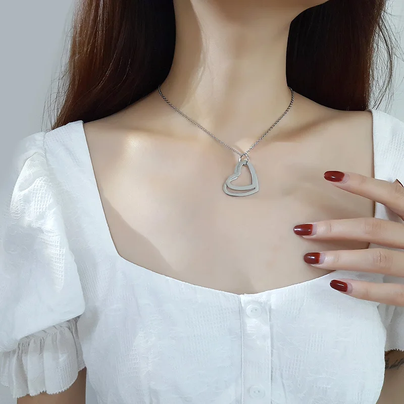 Ожерелье с кулоном в виде сердца, женское, из нержавеющей стали