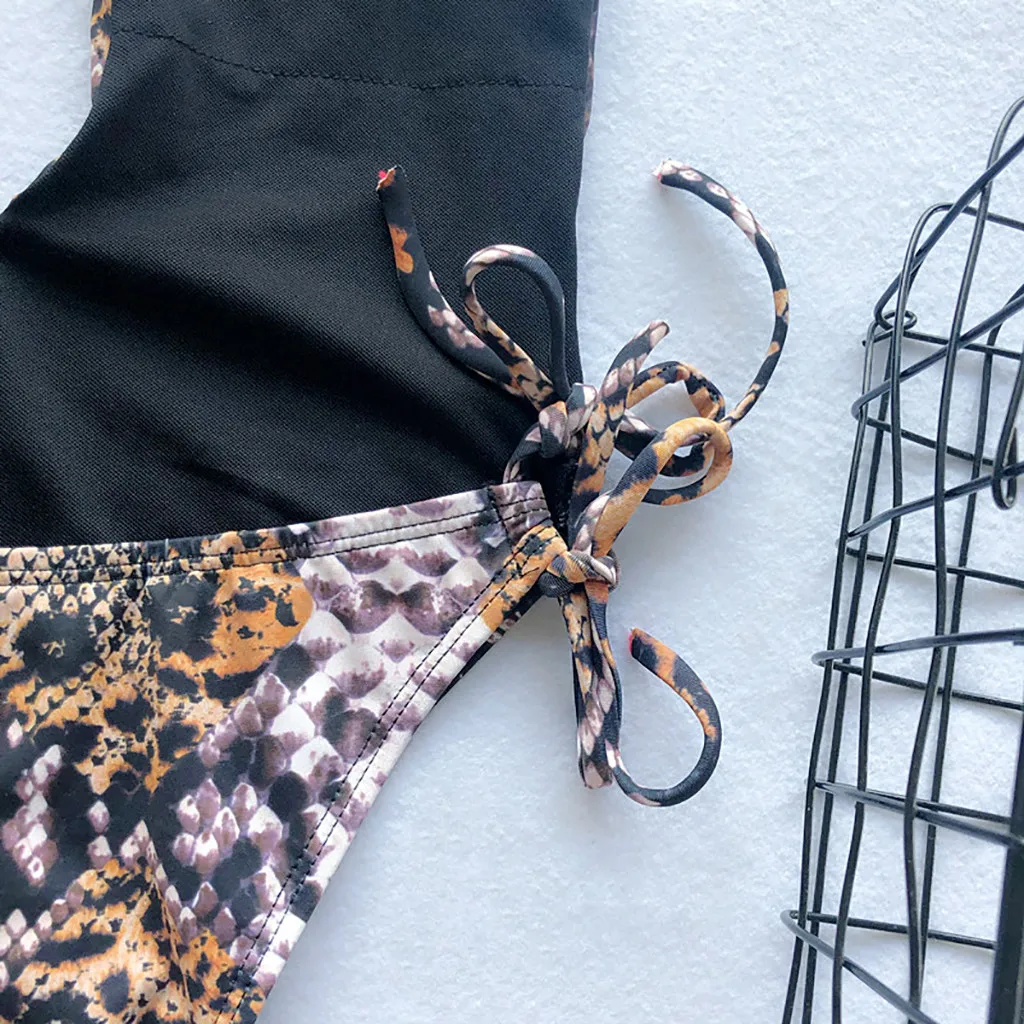 Монокини с серпантиновым принтом, Цельный купальник, женское бикини с глубоким V-образным вырезом, бандажные стринги, купальный костюм, женские купальники, 2021