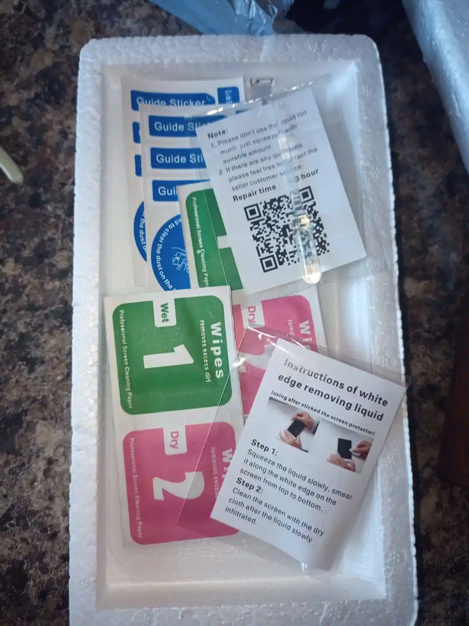 Хорошая упаковка, со всеми оккоррентами для нанесения стекла. Небольшие дефекты пленки.