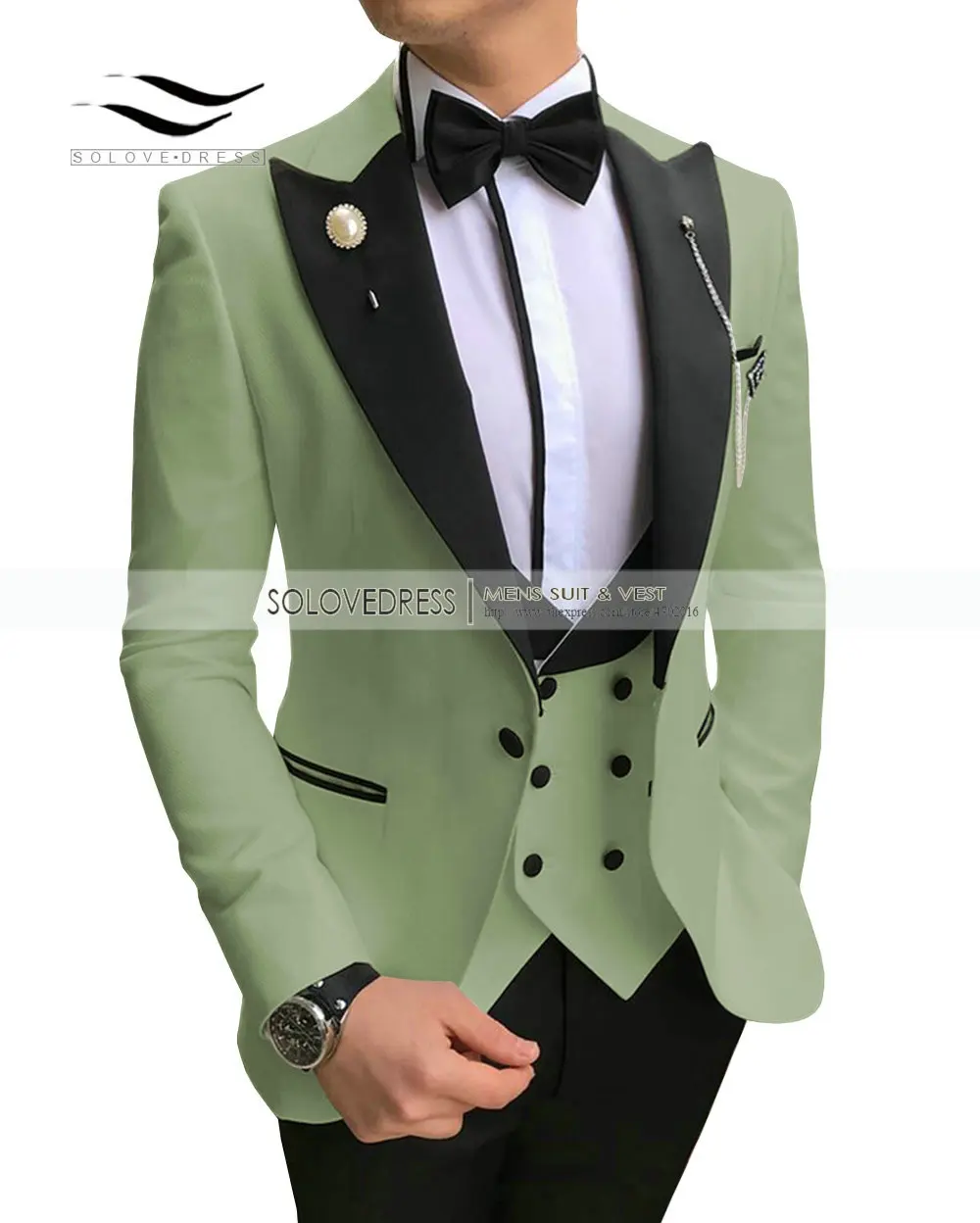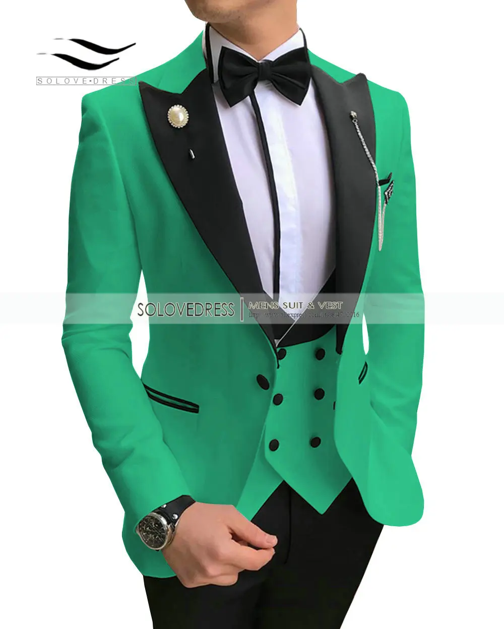 Мужские зеленые костюмы VEIAI, двубортные Свадебные смокинги для же...