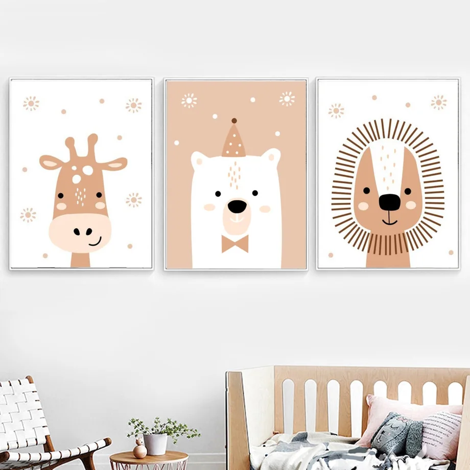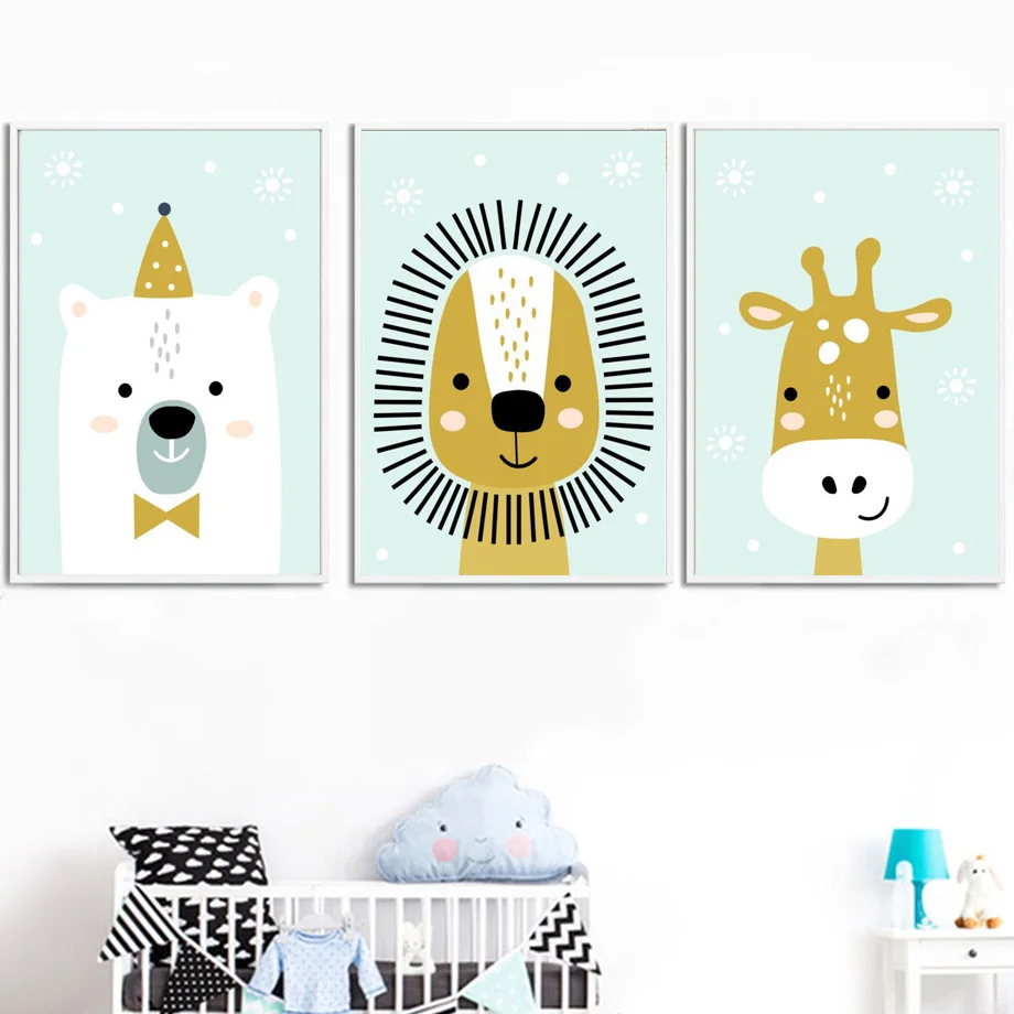 Милый лев тигр жираф зебра мультфильм скандинавские плакаты и принт...