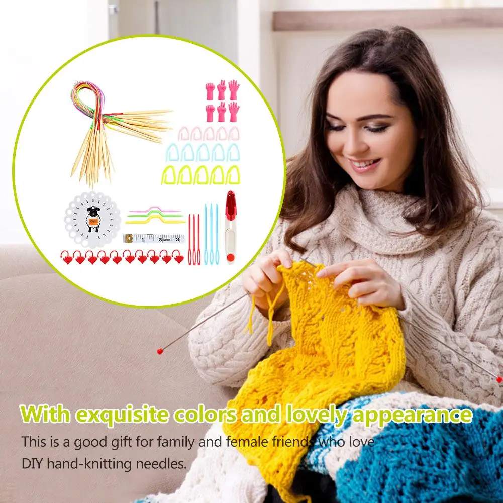 Набор для вязания 60 см, набор спиц, 72 шт., набор спиц для вязания, сумка для хранения длинных кабелей, Круглый двойной наконечник для вязания крючком для начинающих