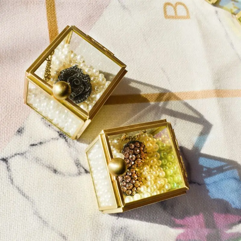 Шкатулка для хранения свадебных колец, стеклянная коробка для украшения для террариума, зеленая стеклянная коробка для колец