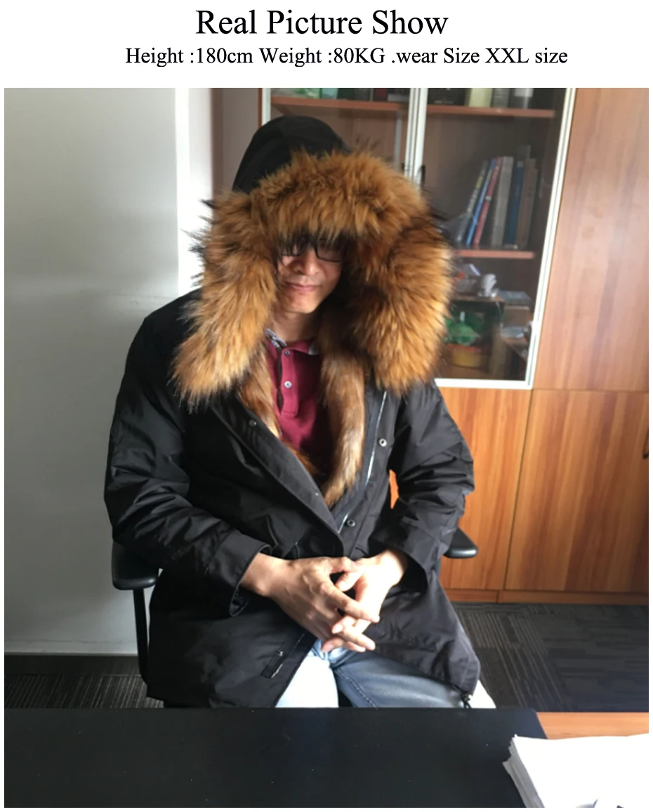 Мужская парка с капюшоном из искусственного меха енота, теплая, для русской зимы, 19257