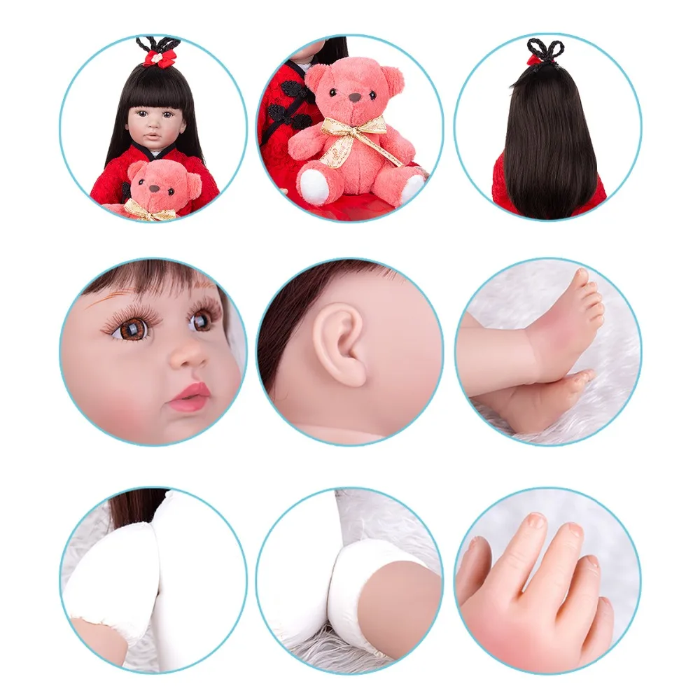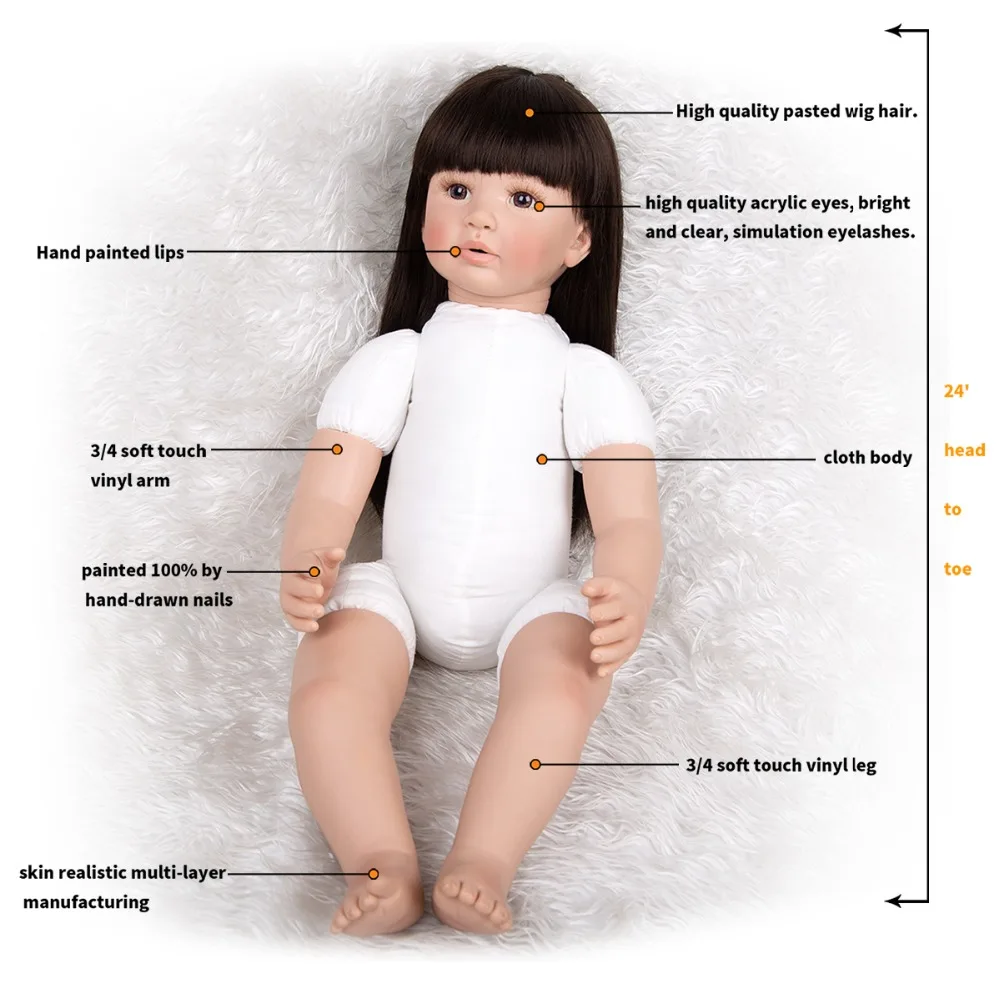 8) Структура: голова, 3/4 конечности изготовлены из силиконового винила. Безопасная продукция, Нетоксичная; Кукольные конечности могут быть активными, они могут сидеть или лежать, не стоять, говорить или кормить.