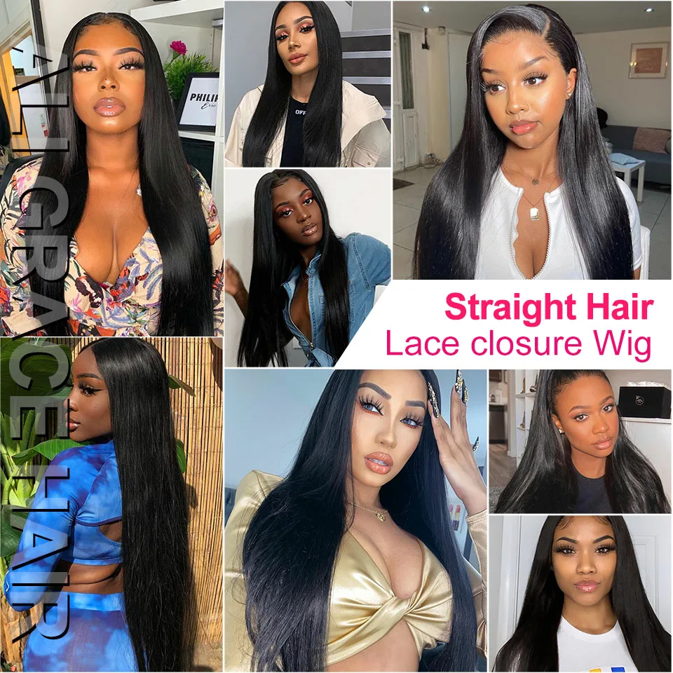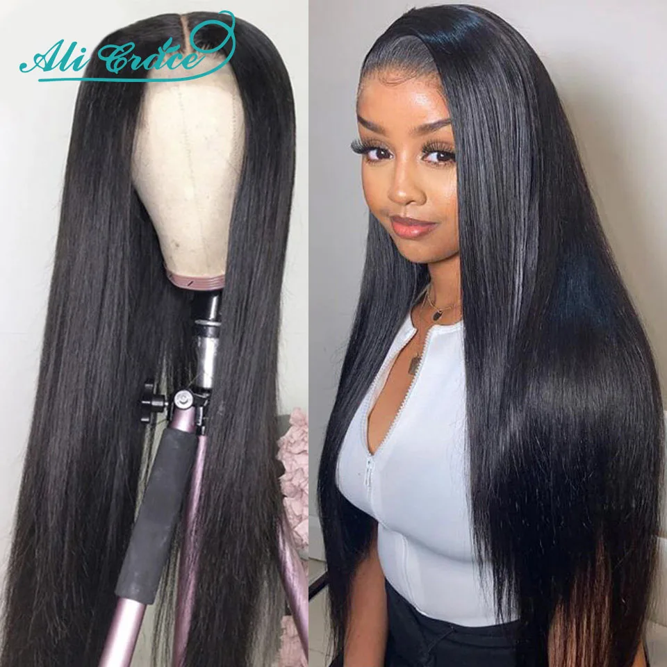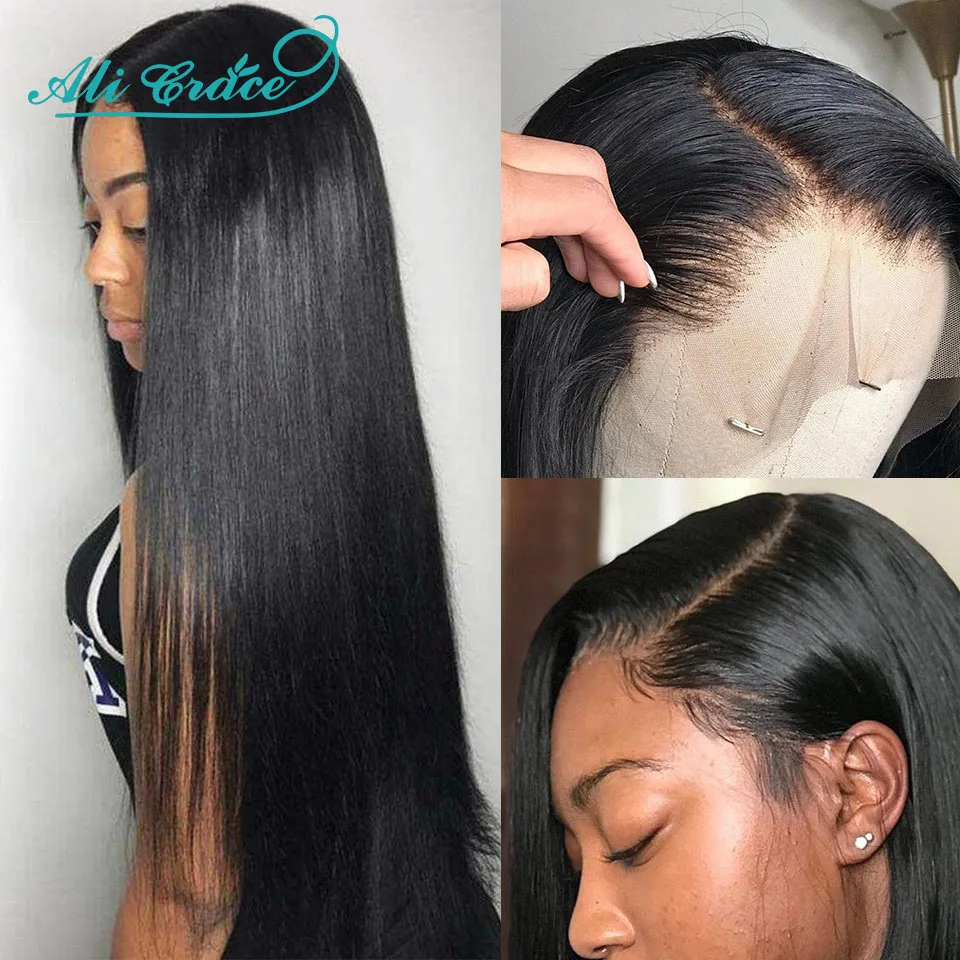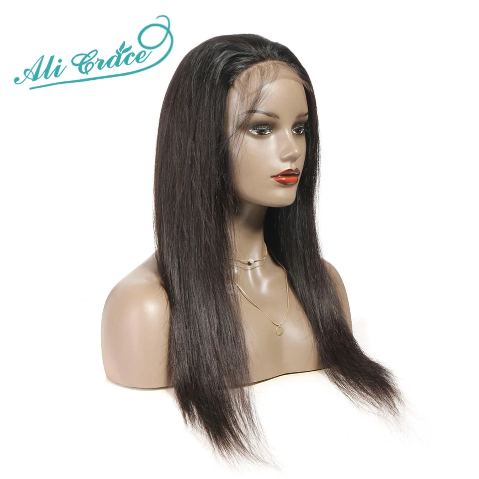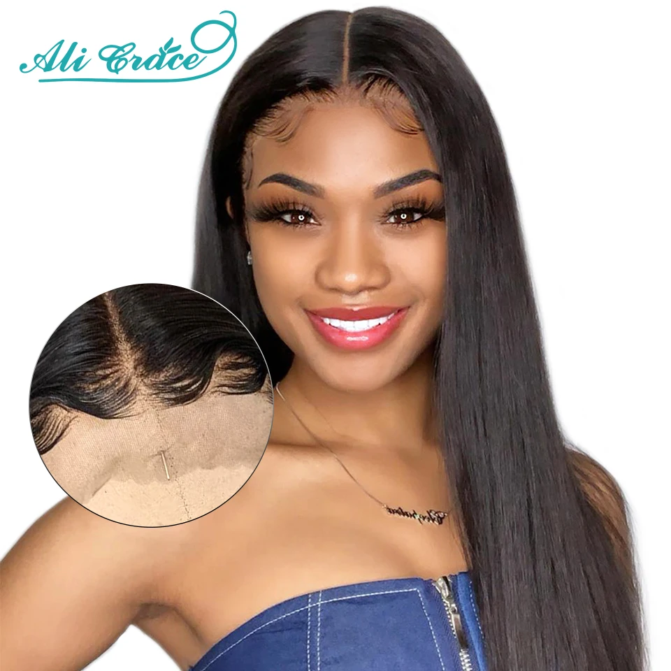 Прямые парики Ali Grace на сетке, парик с застежкой 4X4, парики из человеческих волос, натуральные волосы, перуанские парики из человеческих волос 13X4 на сетке спереди
