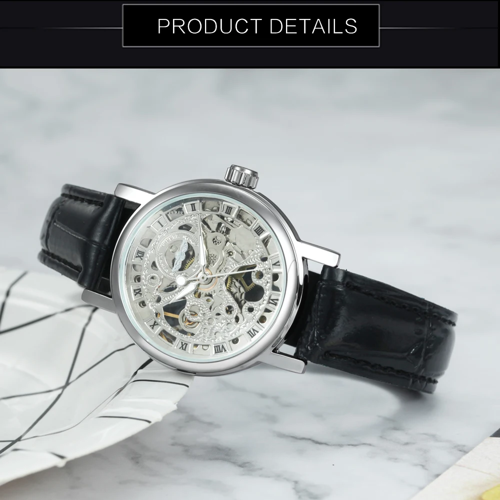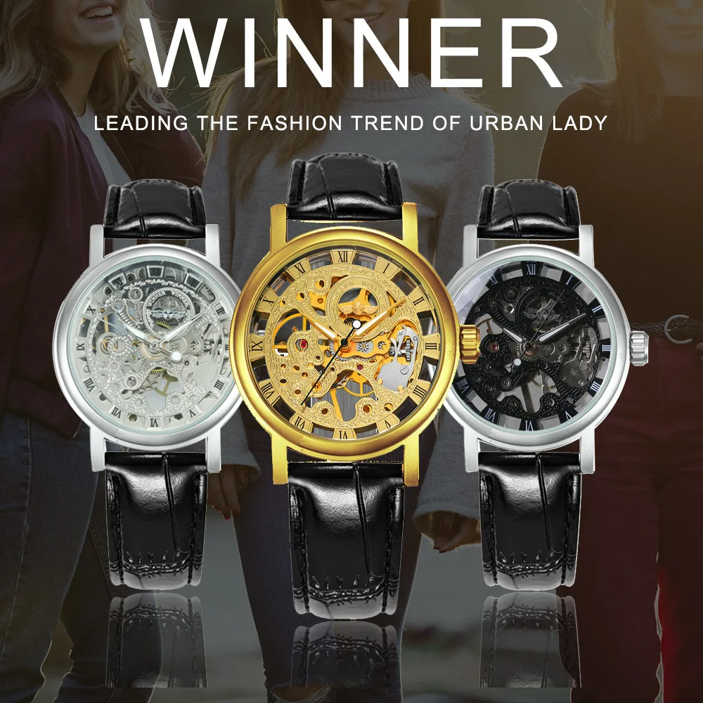 Часы наручные WINNER женские механические, брендовые Роскошные Простые повседневные, с кожаным ремешком