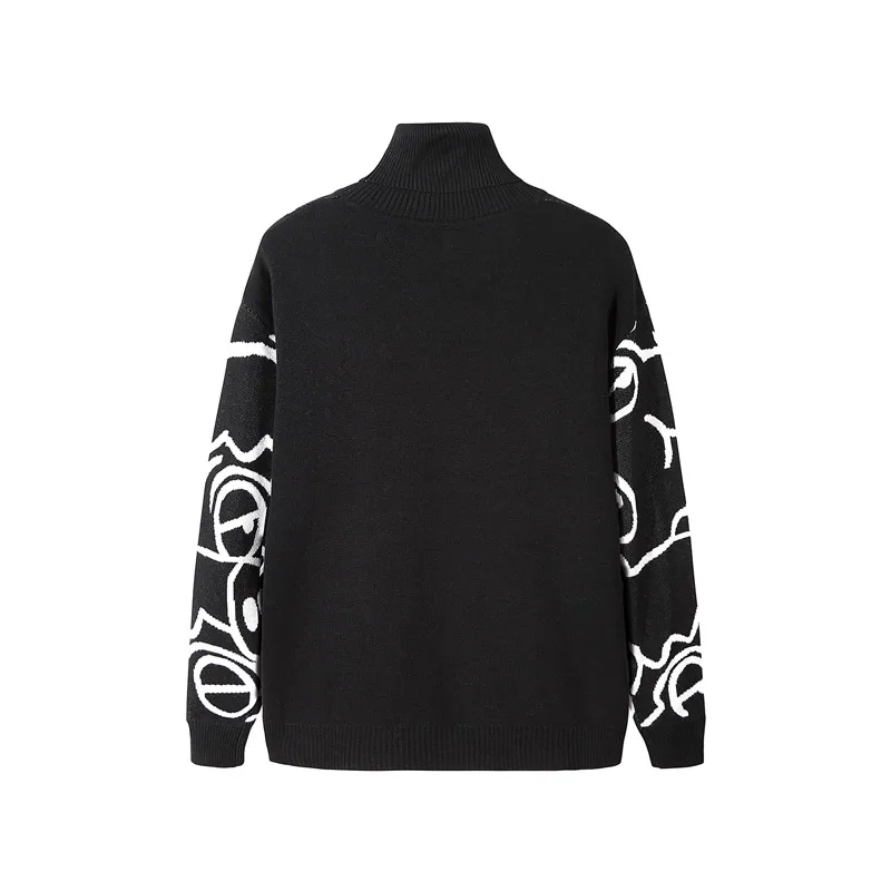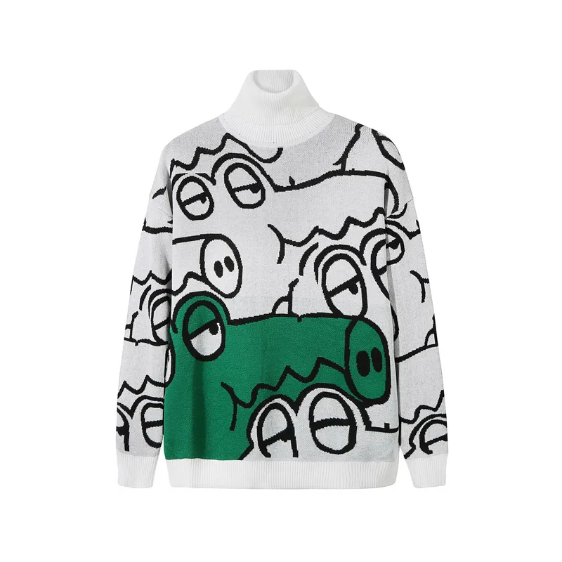 Хлопковый мужской свитер, черная водолазка, мужской вязаный пуловер с мультяшным крокодиловым узором, пальто с длинным рукавом, 2020