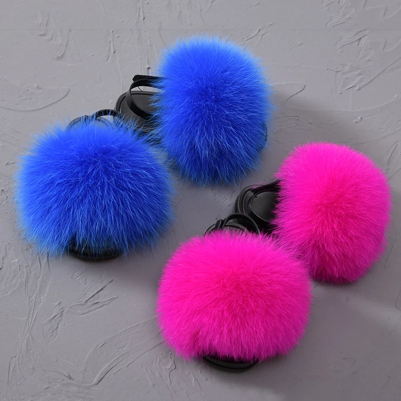 Новинка, детские меховые шлепанцы с ремешком сзади, детские пушистые тапочки из натурального Лисьего меха для маленьких мальчиков и девочек, домашняя обувь