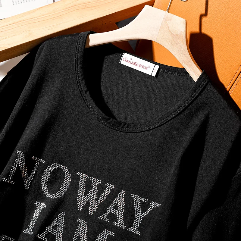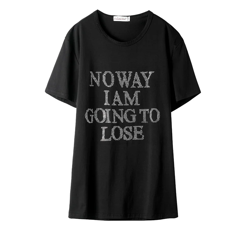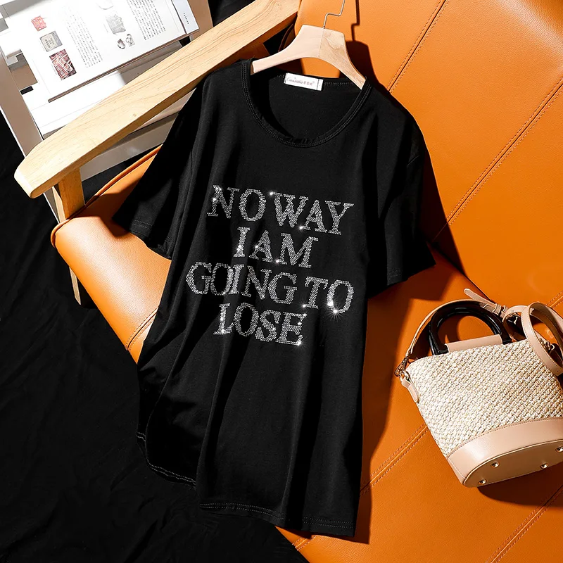 Лето 2020 корейский Стиль Модные свободные размера плюс женская футболка с коротким рукавом и личные письма Лидер продаж со стразами женские топы T135