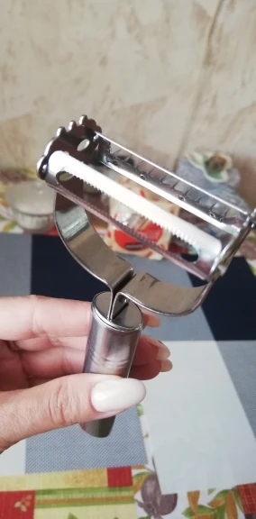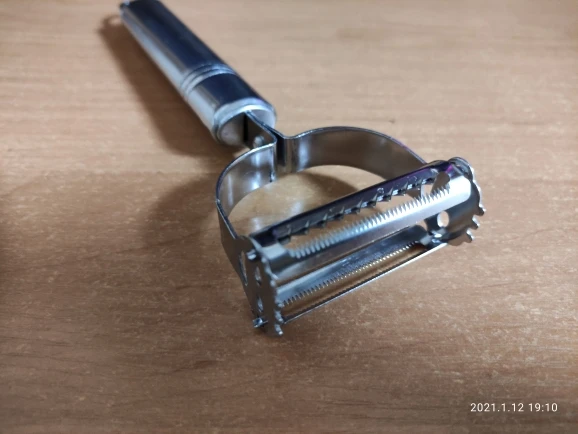 Заказала овощечистку только из за возможности резать морковку по корейски. Товар пришел без повреждений и брака. .. но зубцы которыми надо нарезать очень тонкие и как мне кажется не достаточно крепкие. Для огурца или любого мягкого овоща в самый раз. Как попробую напишу точный отзыв. Продавцу спасибо, товар пришел быстро. С продавцом не общалась.