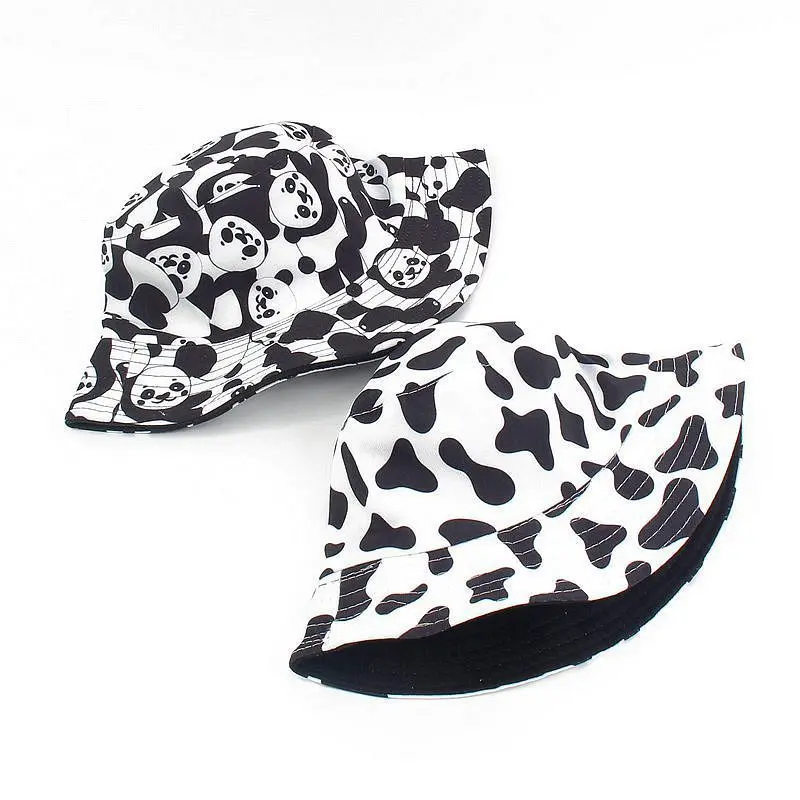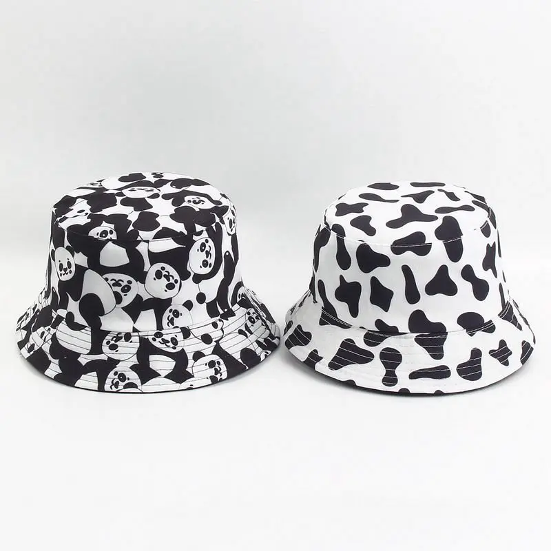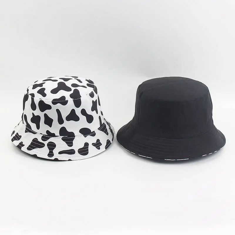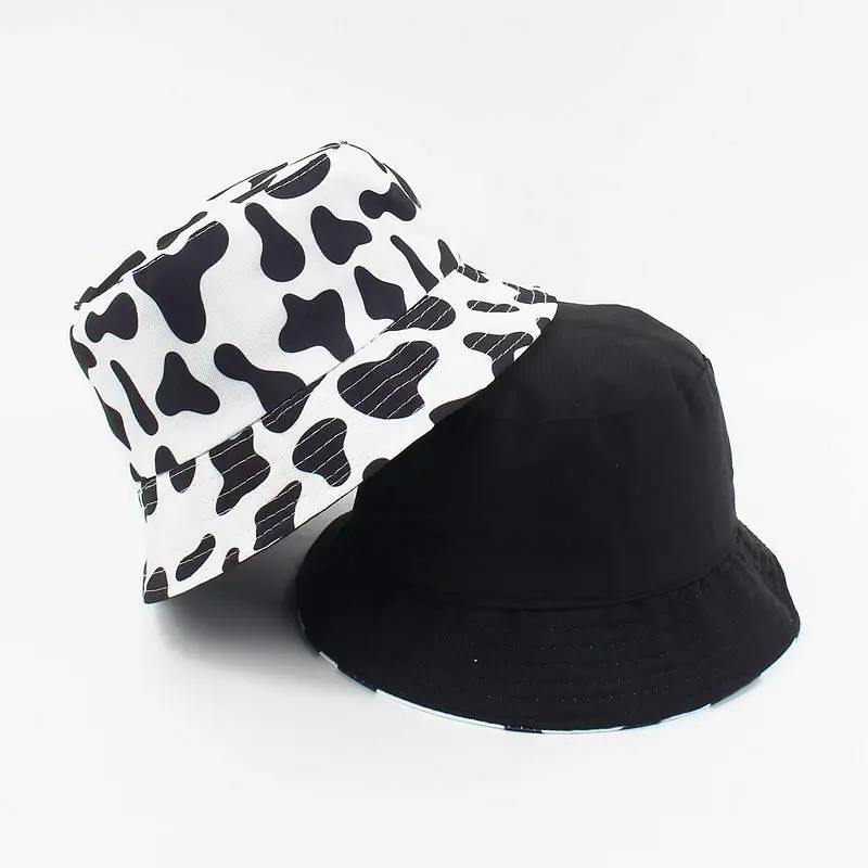 Панама с коровьим принтом для мужчин и женщин, двусторонняя шляпа с козырьком, белый и черный цвета, летняя