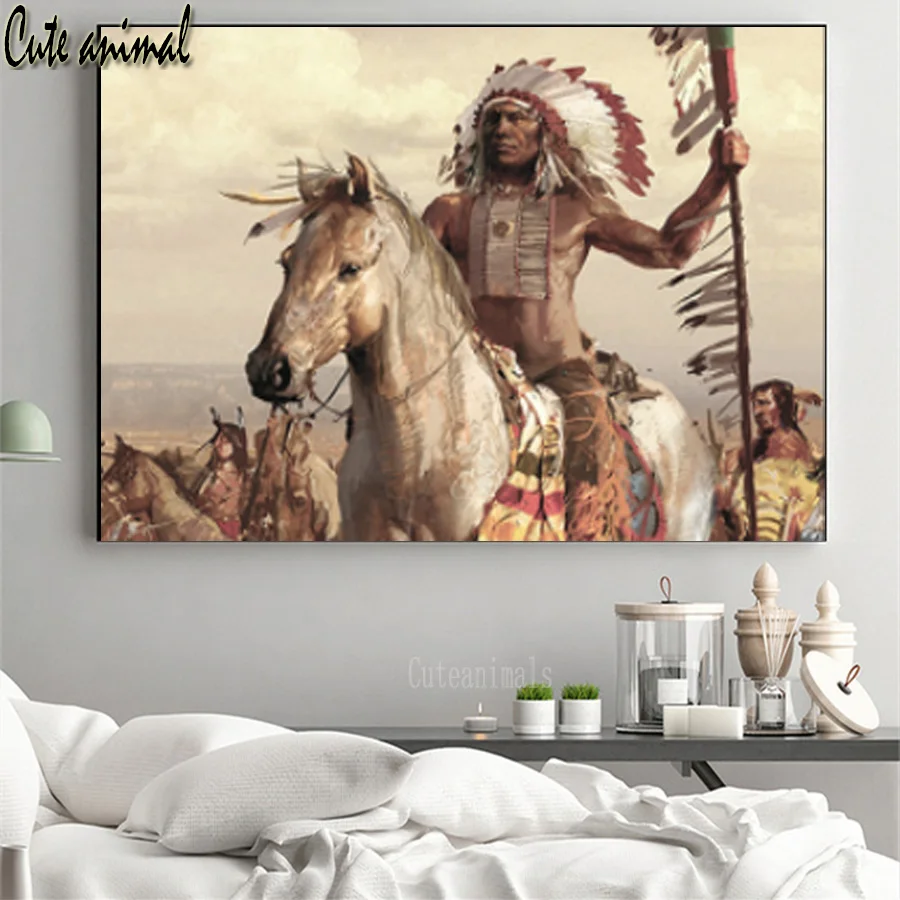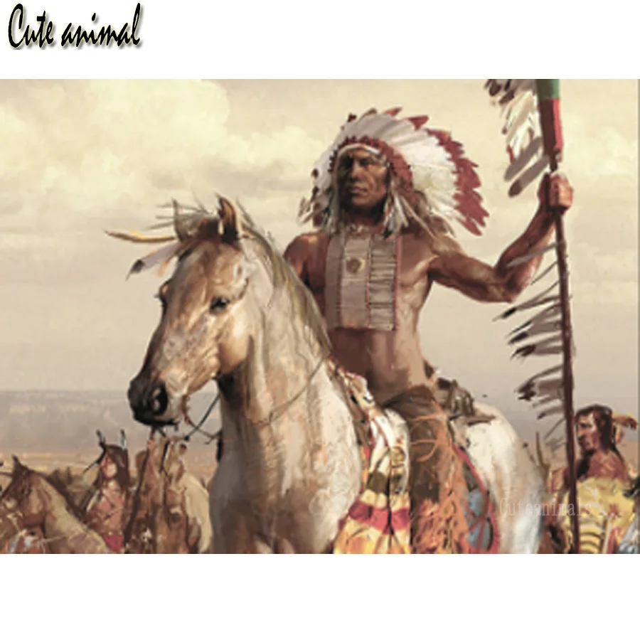 5D алмазная картина индийские перья лошадь воин коренное полное сверло квадратная Вышивка крестом Алмазная вышивка мозаика ручной работы