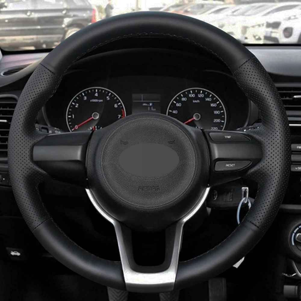 Чехол на руль для Kia Rio Чехлы рулевого колеса автомобиля-2017 Rio5 2019 K2 Picanto Morning, черный, натуральная кожа, сделай сам, 2019