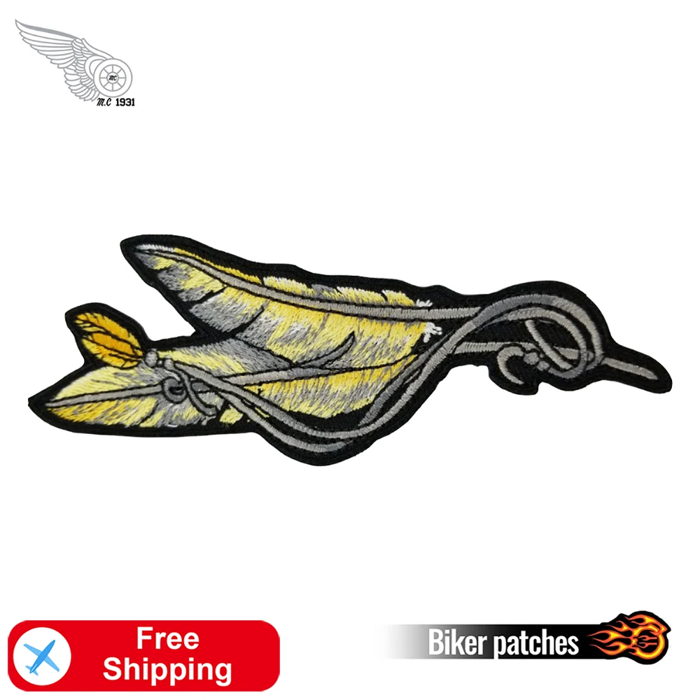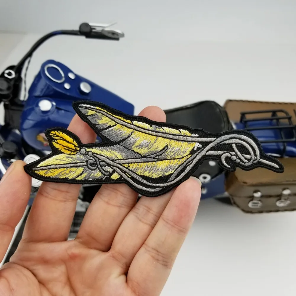 Вышитая нашивка с золотыми перьями для украшения одежды, термоклейкие значки, нагрудная наклейка, модные аксессуары для байкера и мотоцикла
