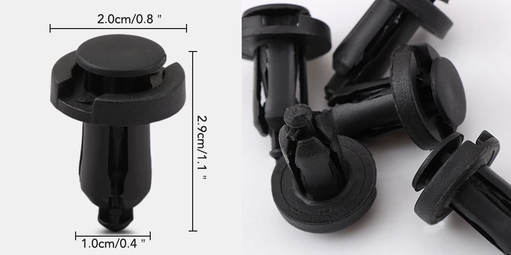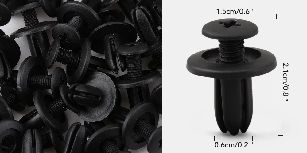 Эти заклепки для бампера изготовлены из пластика, не ржавеют и не гниют. Можно использовать в течение длительного времени.