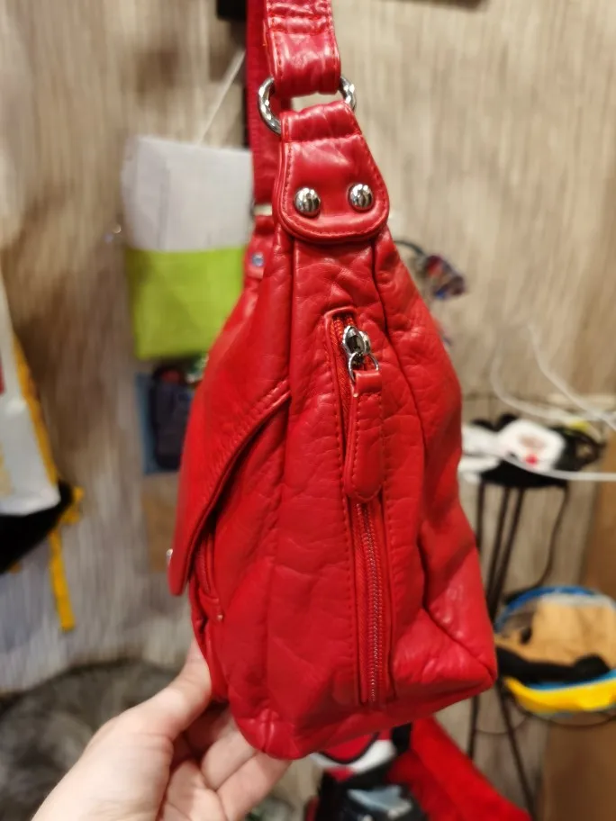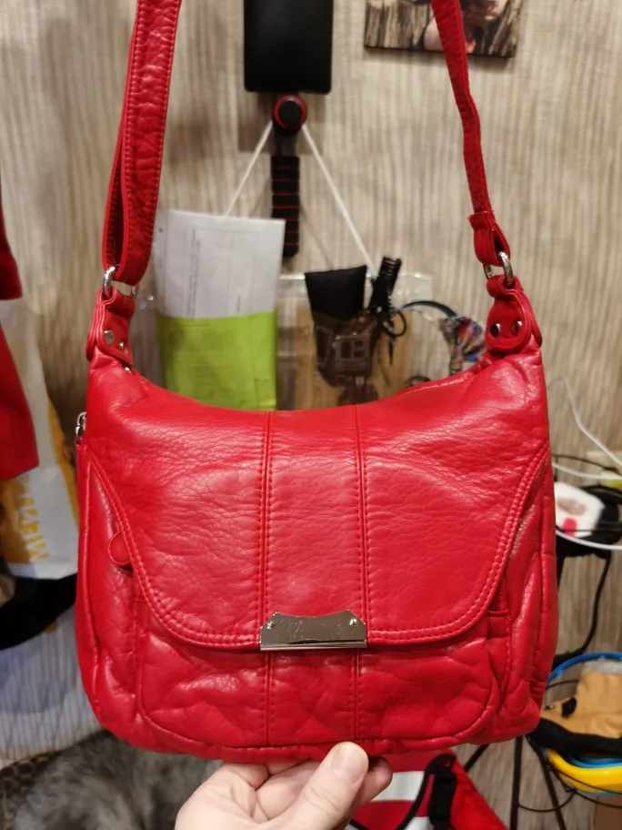 сумка пришла вся помятая кнопка.на кармане.плохо застегиваетмя не магнитится уже 2раз у.меня.проблемы с сумками на.АЛИ единсвенное спасибо пробавцу за резинку для волос разочарование полное..