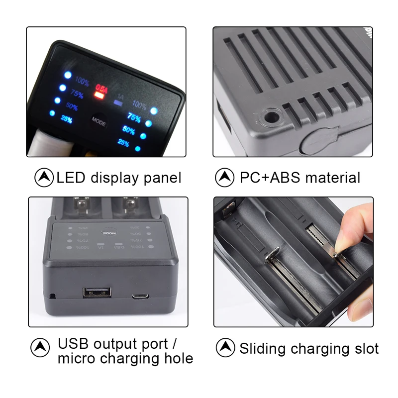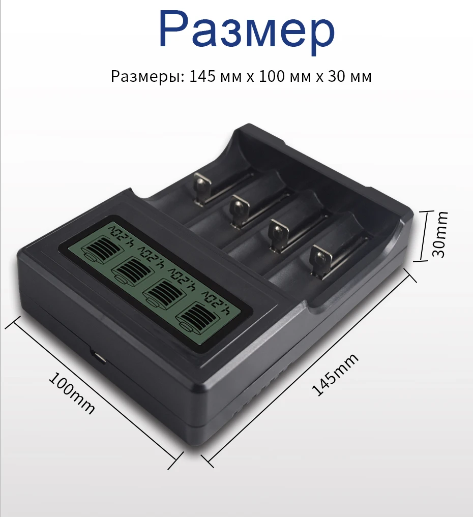 Бренд: PALOОсобенности-ЖК-дисплей smart-4 слота работают независимо-Множественная защита-3 зарядный ток (500мА/1000мА/2000ма)-Функция активации напряжения 0 В-Интеллектуальное распознавание литиевой батареи (li-ion)/0 никель-металлогидридный гидрид (NiMH/Cd) батареяАтрибуты:Напряжение холостого хода: 5 В ± 0,2 VПостоянный ток зарядки: 500 ± 50 мАЗарядка отсечки напряжение: 4,2 ± 0,02 VТок Отключения заряда: 70 мАТок зарядки: 60 ± 20 мАВнешний ток в режиме ожидания: ≤ 60 мААвтоматическая перезарядка измерять пороговое напряжение: 3,9 ± 0,15 VРабочая температура: 0-40 °CРазмер: 145*100*30 ммЗарядное устройство для: 3,7 v L-литий-ионный14500/16340/16350/18500/18650/17500/22650/26650 аккумуляторная батарея