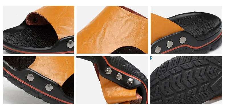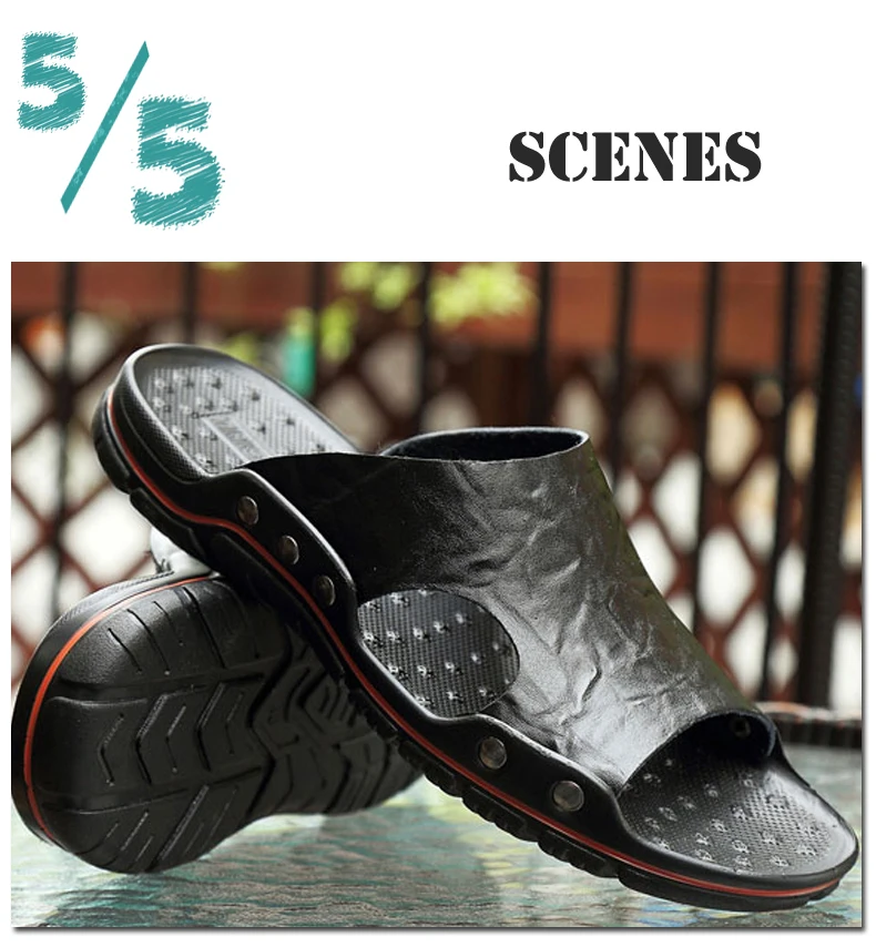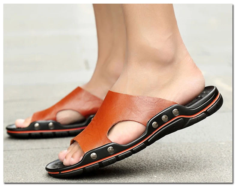 Мужские летние кожаные шлепанцы, сланцы, обувь, повседневные шлепан...
