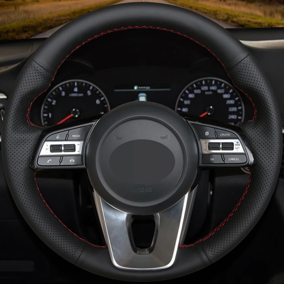 Чехол рулевого колеса автомобиля ручной работы из черной искусственной кожи для Kia K5 Optima 2019 Cee 'd Ceed 2019 Forte Cerato (AU) 2018