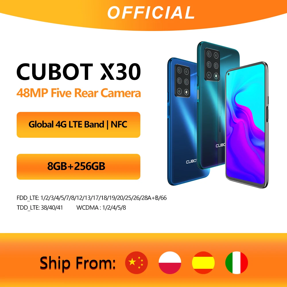 Cubot X30 смартфон 5 камер 48MP пять камер 32MP Фронтальная камера 6 + 128 ГБ8 ГБ + 256 ГБ NFC 6,4 "FHD + Google Android 10 Глобальная Версия WIFI 2,4G5G мобильные телефоны 4200 мАч Большая Батарея celular OTG GPS