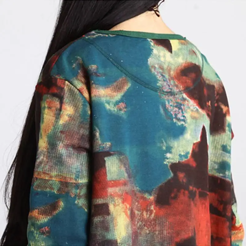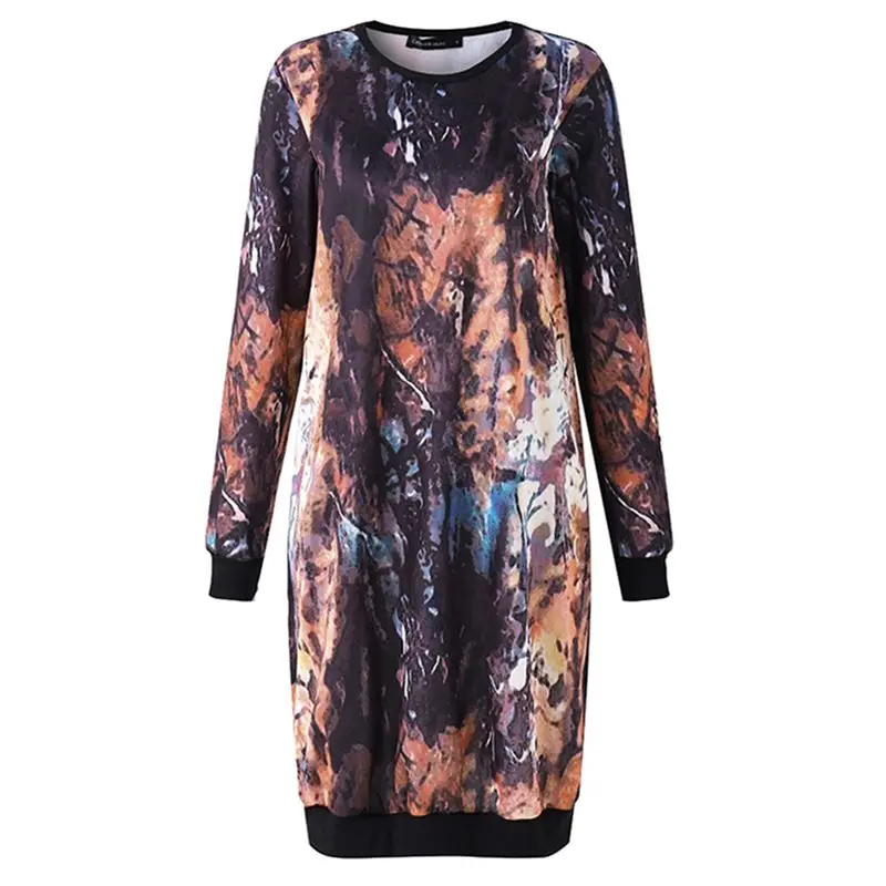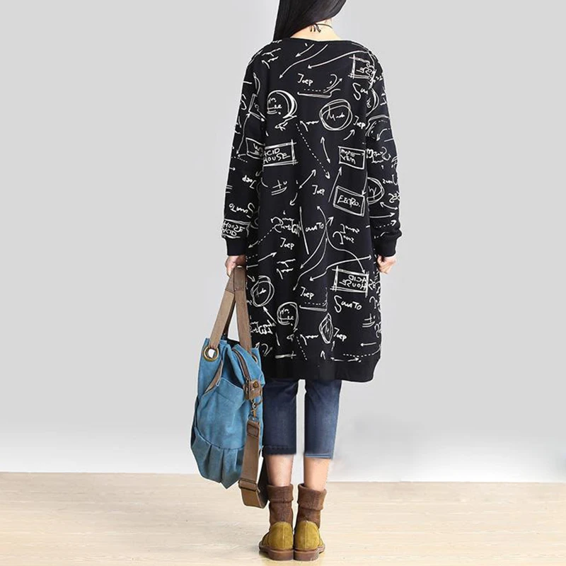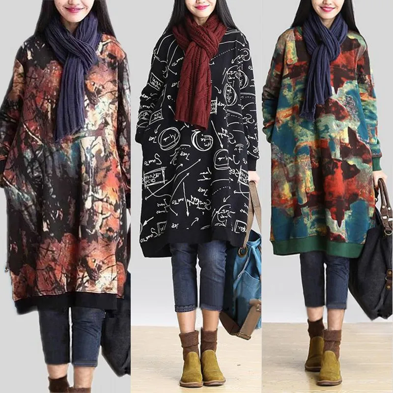 Зимнее женское платье-свитшот Celmia с винтажным принтом и длинным рукавом, повседневное Свободное длинное платье, женское платье с карманами