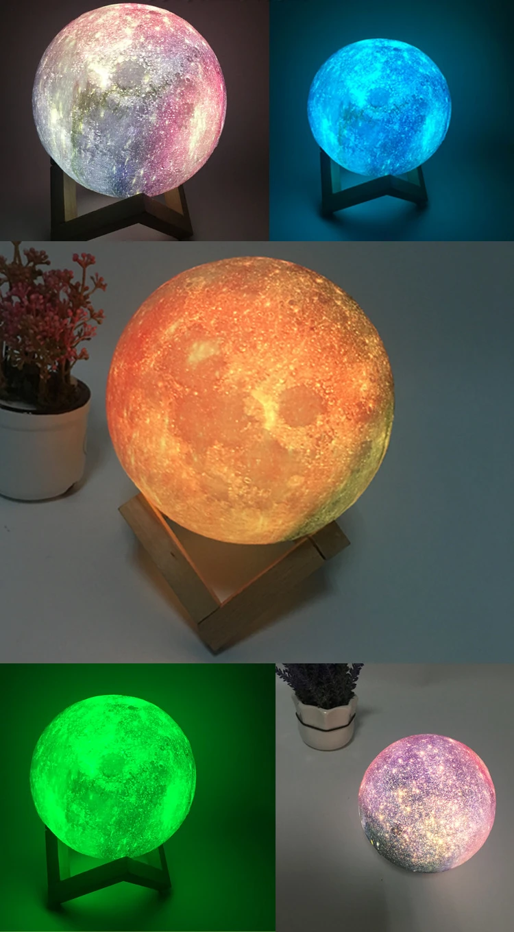 Особенности1. Технология 3D печати: слой за слоем печати2. Зарядный порт и переключатель интеграции: простой, красивый и практичный, простой в эксплуатации3. Теплые и мягкие светодиодные фонари: Коснитесь металлического кольца, чтобы переключить цвет и выключить свет4. Вы можете держать его на руке. Легко класть куда угодно с деревянным держателем5. Безопасный и экологически чистый: PLA материал, извлекаемый из кукурузных стеблей, твердый и гладкий, нетоксичный, без запаха, экологически чистый6. Долгое время использования: 300 мАч встроенный аккумулятор (3 вида цветов крана), 500 мАч встроенный аккумулятор (удаленный 16 видов цветов), после полной зарядки, лампа может использоваться 8 - 30 часов, полная зарядка занимает около 6 - 8 часов7. Идеальный подарок: выразите свою любовь с этим теплым подарком. Ваши дети или любимые не могут устоять перед этим очаровательным подарком. И это также отличное украшение для вашего дома8. 4 диаметра красочного неба Луны лампы на выбор: 10 см, 12 см, 15 см, 18 см, 20 см Спецификация Название: Красочный Небесный лунный светильникМатериалы: пластик PLAХарактеристики: пожалуйста, обратитесь к thr диаметру продуктаЯркость: плавная регулировкаЦветовая температура: 3000K / 6000KЕмкость аккумулятора: 300 мА · чВремя зарядки: 6 - 8 часовВремя работы: 3-8 часов (зависит от яркости)Режим зарядки: USB характеристики постоянного тока:-Материал: пла-пластик-Мощность: 0,5 Вт-Яркость: плавная регулировка, Длительное нажатие на переключатель, чтобы изменить яркость-Цветовая температура: 3000K / 6000K-Емкость аккумулятора: 1 х 300 мАч li-po аккумулятор (встроенный)-Время зарядки: 3 - 6 часов-Время работы: 3 - 8 часов (зависит от яркости)-Источник питания: USB DC 5 В (можно использовать для зарядки лунного света. Например, компьютер, мобильные телефоны, зарядные устройства)Инструкции по использованию:1. Коснитесь металлического кольца в нижней части лунной лампы, чтобы включить/выключить свет и изменить цвет с белого на желтый.2. Нажмите на металлическое кольцо, чтобы настроить яркость, и он имеет функцию памяти яркости.3. Если ваша рука слишком сухая или температура слишком низкая, свет может не ответить.4. Белый свет не будет светиться, когда мощность низкая.5. Вставьте разъем постоянного тока в металлическое кольцо в нижней части лунной лампы для зарядки,Красный индикатор всегда горит во время зарядки.6. Красный свет автоматически выключается при полной зарядке.Посылка включает в себя:3 вида цветов кран в комплекте:1 красочный Небесный лунный светильник1 кабель для зарядки1 Описание продукта:1 деревянная рамкаПульт дистанционного управления 16 видов цветов включает в себя:1 красочный Небесный лунный светильник1 кабель для зарядки1 пульт дистанционного управления1 Описание продукта:1 деревянная рамка