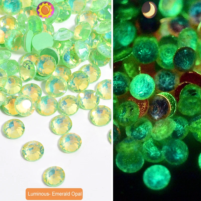 SS6-SS30, высококачественные стразы, светящиеся, фосфоресцирующие, Опаловый цвет, стразы для ногтей, блестящее стекло, драгоценный камень, 3D Шарм, плоские с оборота стразы, флуоресцентные AB художественные украшения