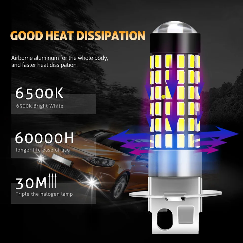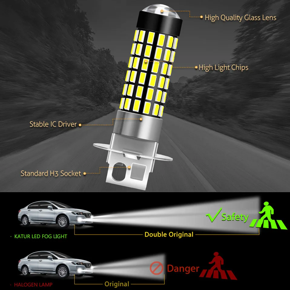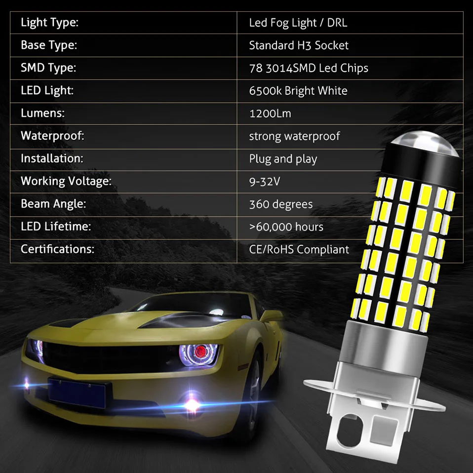 2 шт. 1200LM H1 H3 Светодиодный Противотуманные фары супер яркие 78SMD 3014 чипов белые ходовые огни s поворот парковка противотумансветильник фары s 6500K 12 В