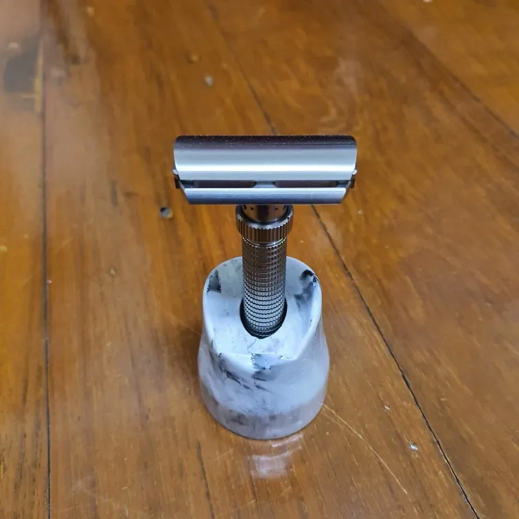 Looks very nice, nicer up close than in the pictures. Great value, holds your brush or almost all of the DE razors in my collection (only exception are the thickest od them all).