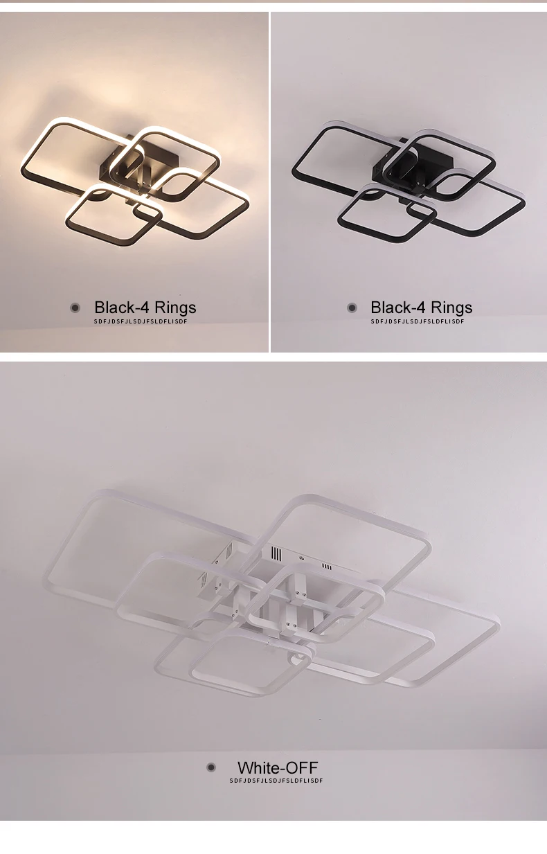 Светодиодная люстра, черно-белая, квадратная, для гостиной, спальни, столовой